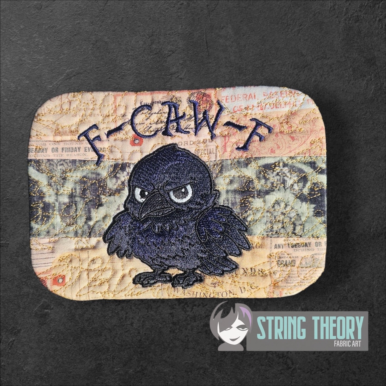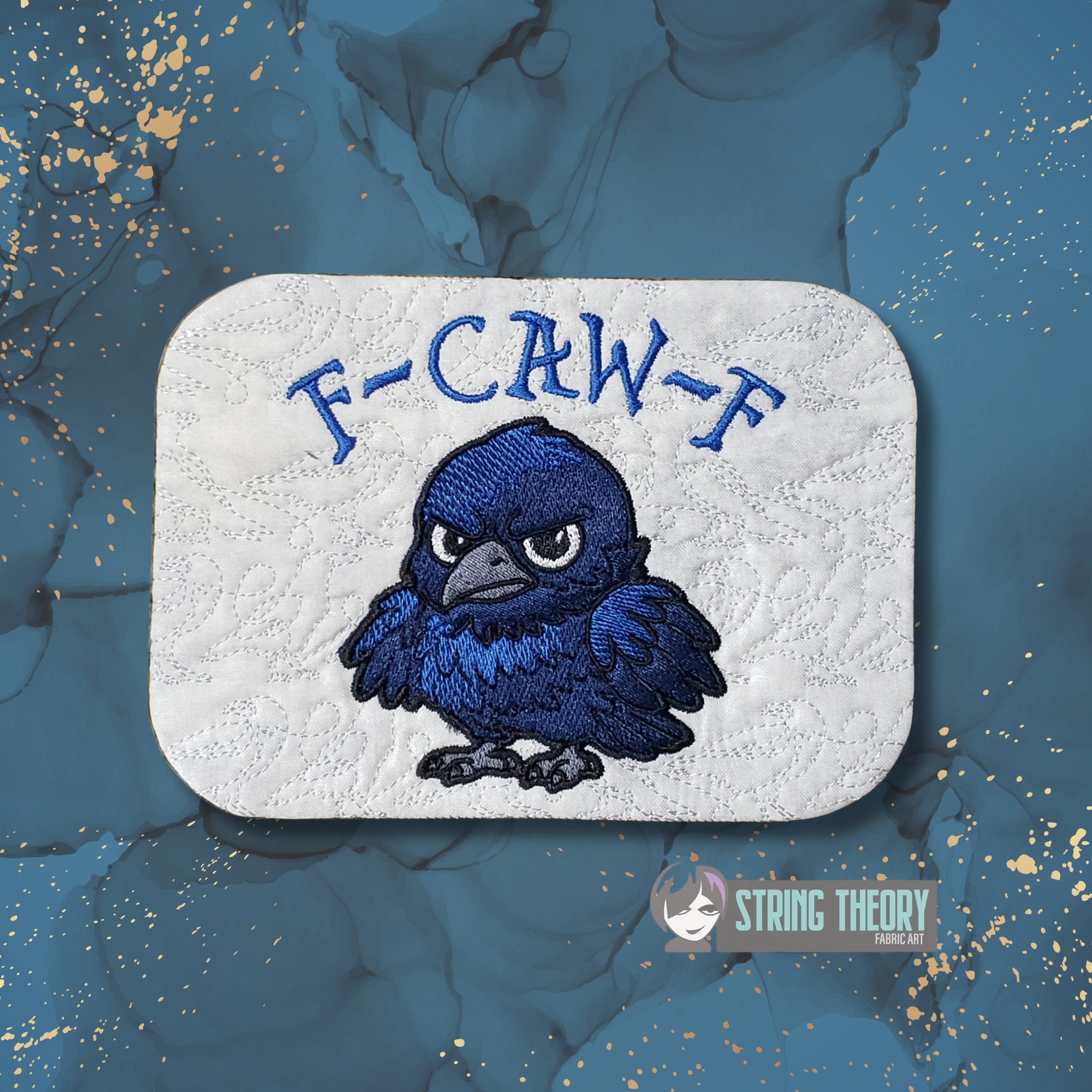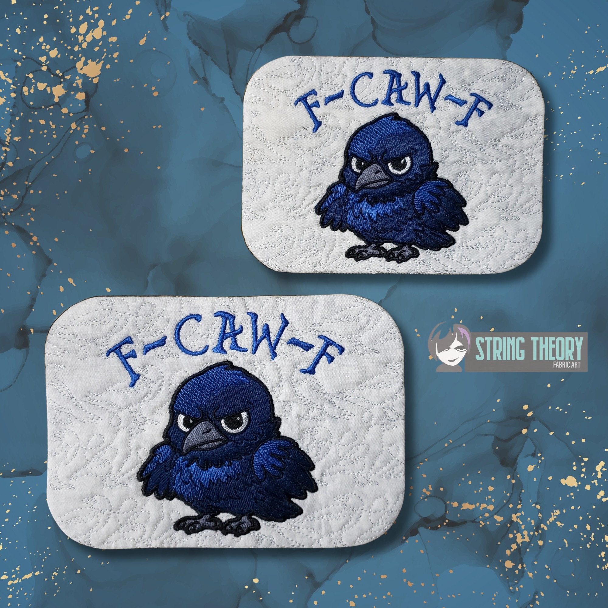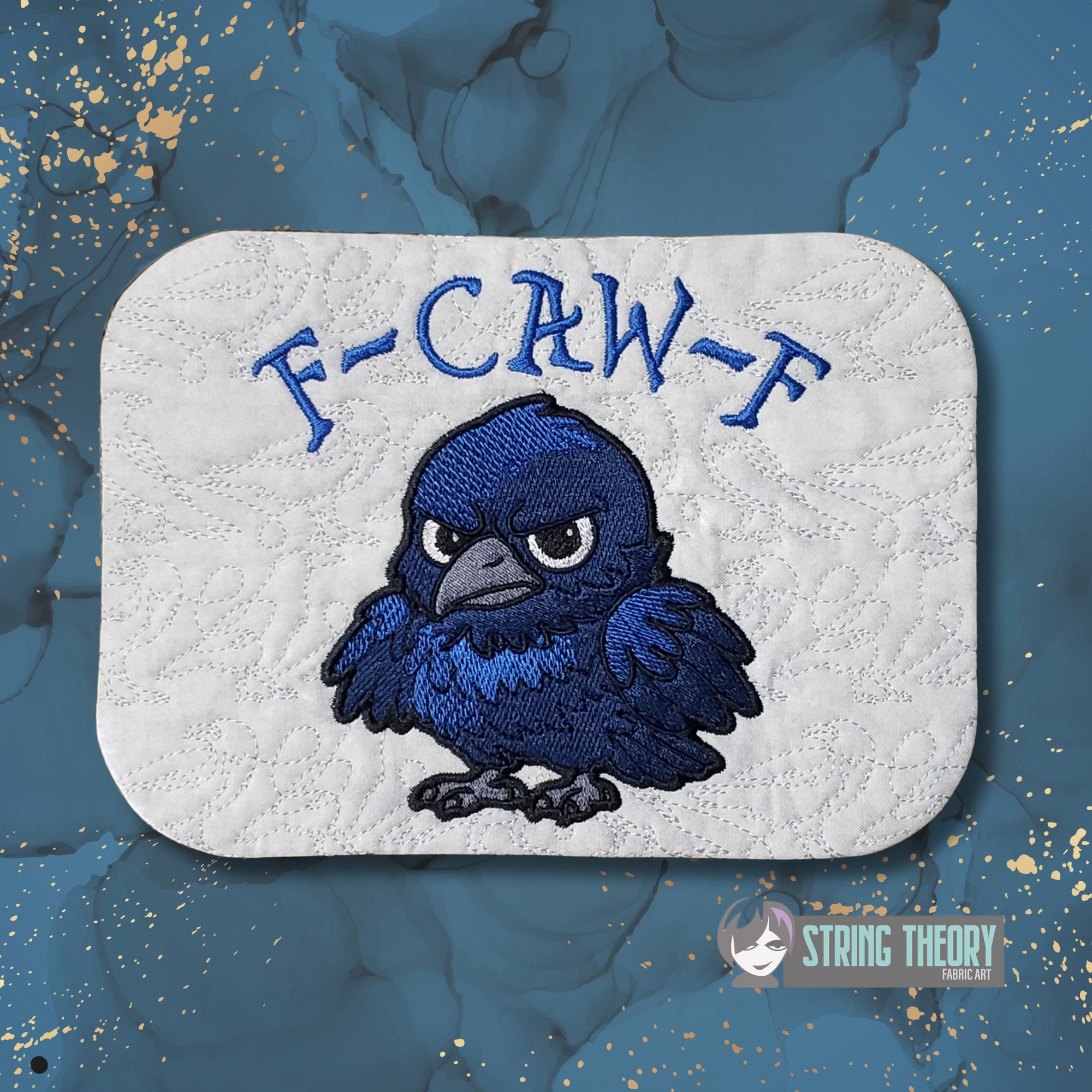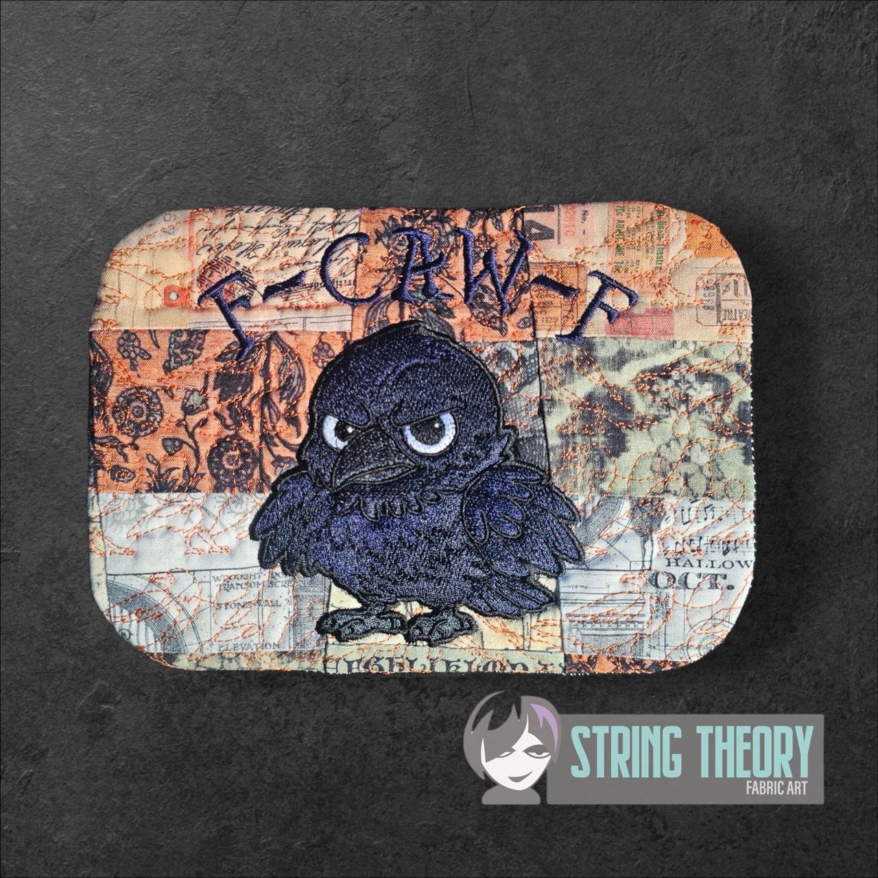 Chibi Crow – F Caw F Mug Rug ITH in the hoop Digital Download for Machine Embroidery Pattern, Design (5×7, 6×10 Hoop)