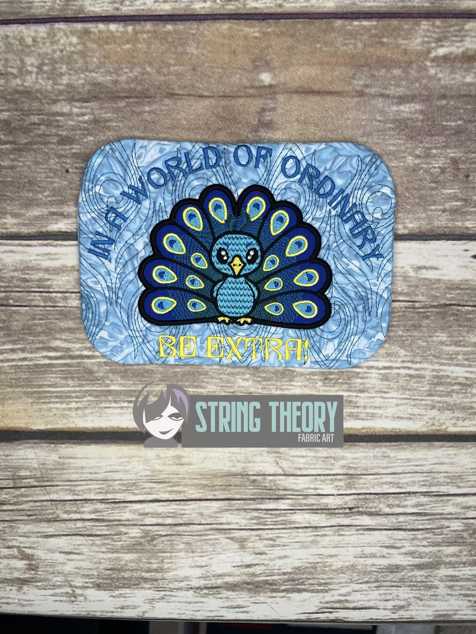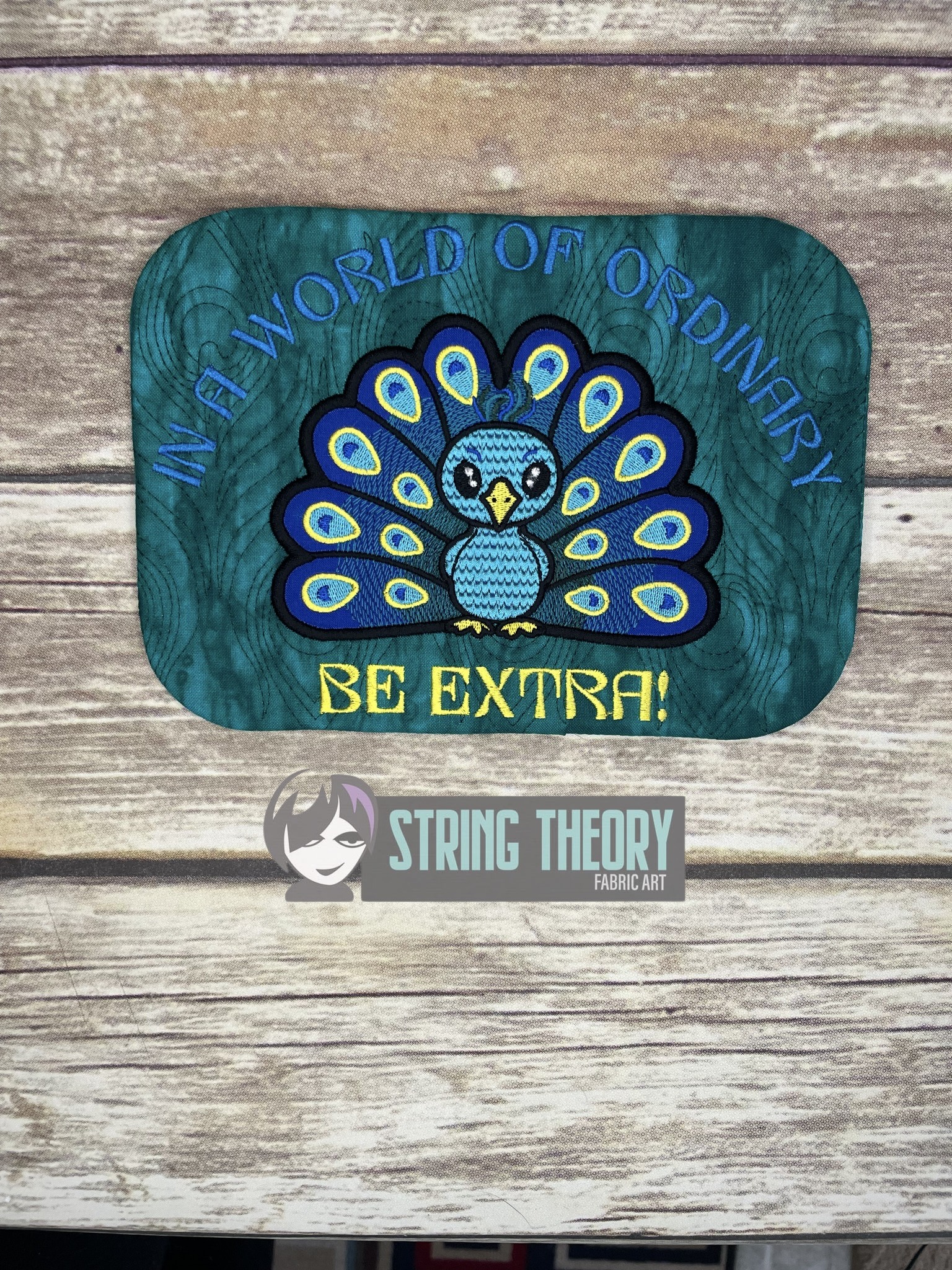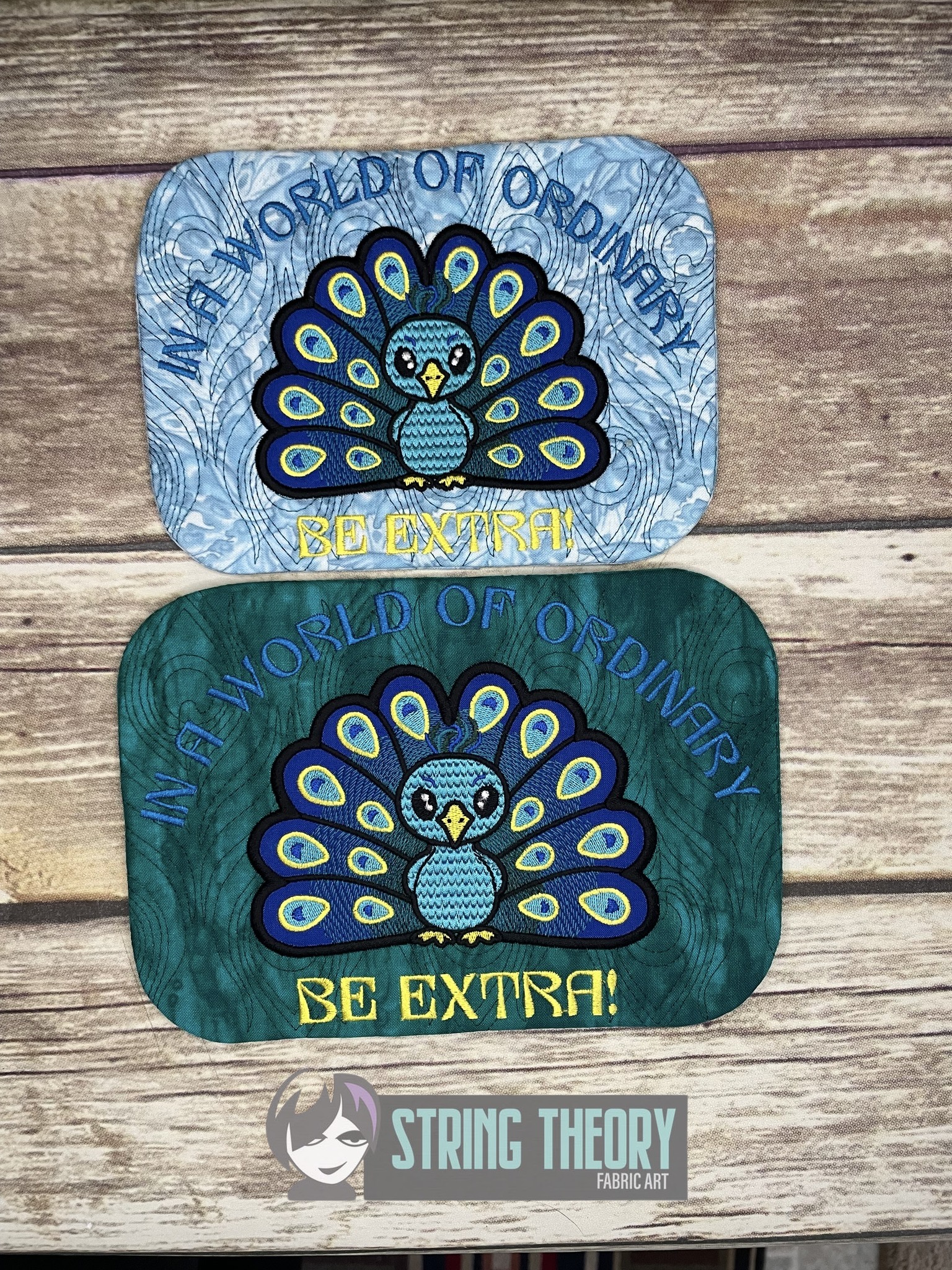 Chibi Peacock – Be Extra Mug Rug ITH in the hoop Digital Download for Machine Embroidery Pattern, Design (5×7, 6×10 Hoop)