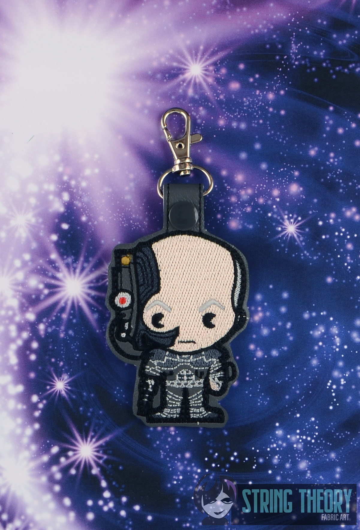Fob measures approximately 2 1/4″ x 3″ with a ½” x 1 ½” tab to fold over the slip ring or lobster claw.