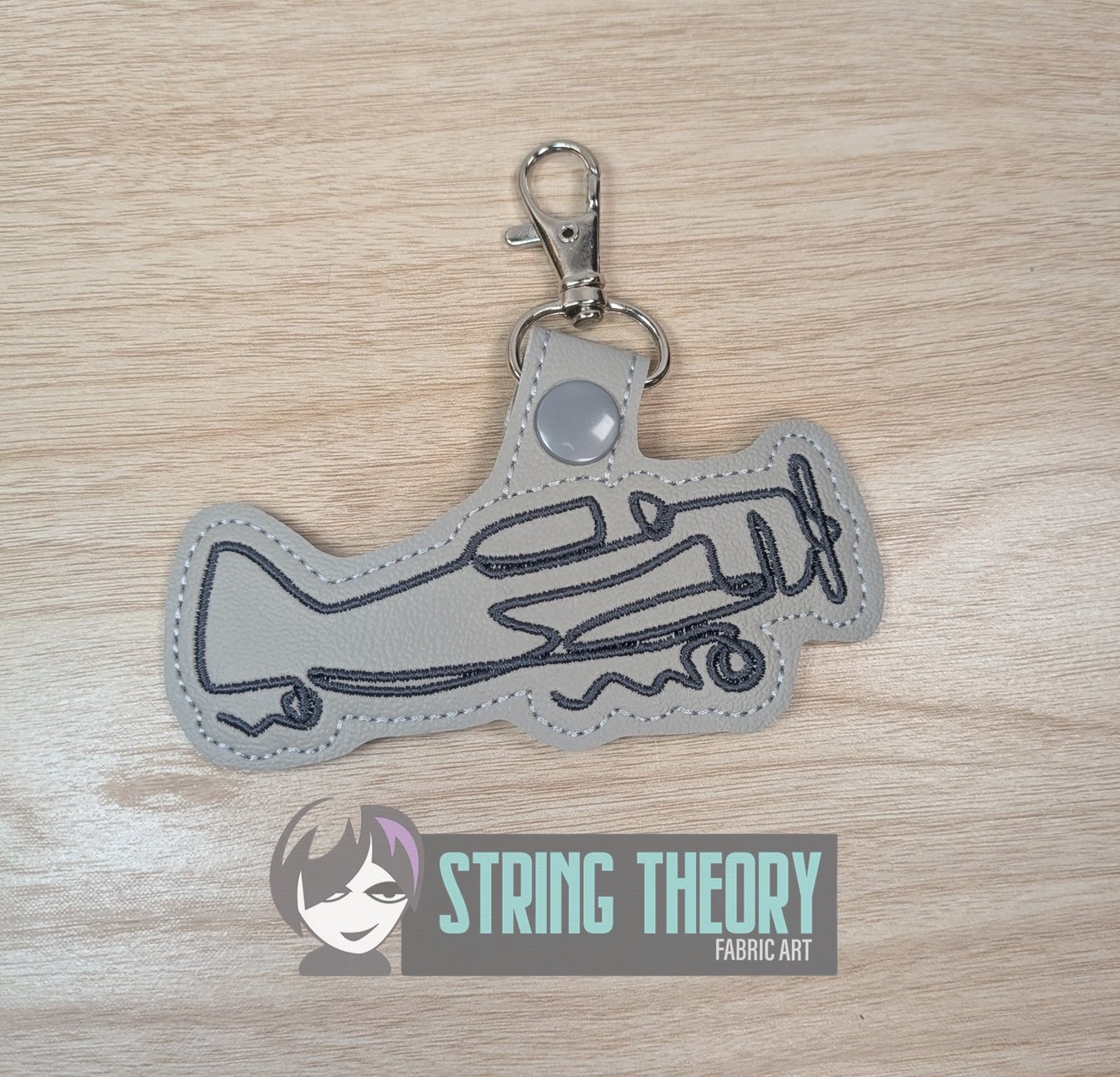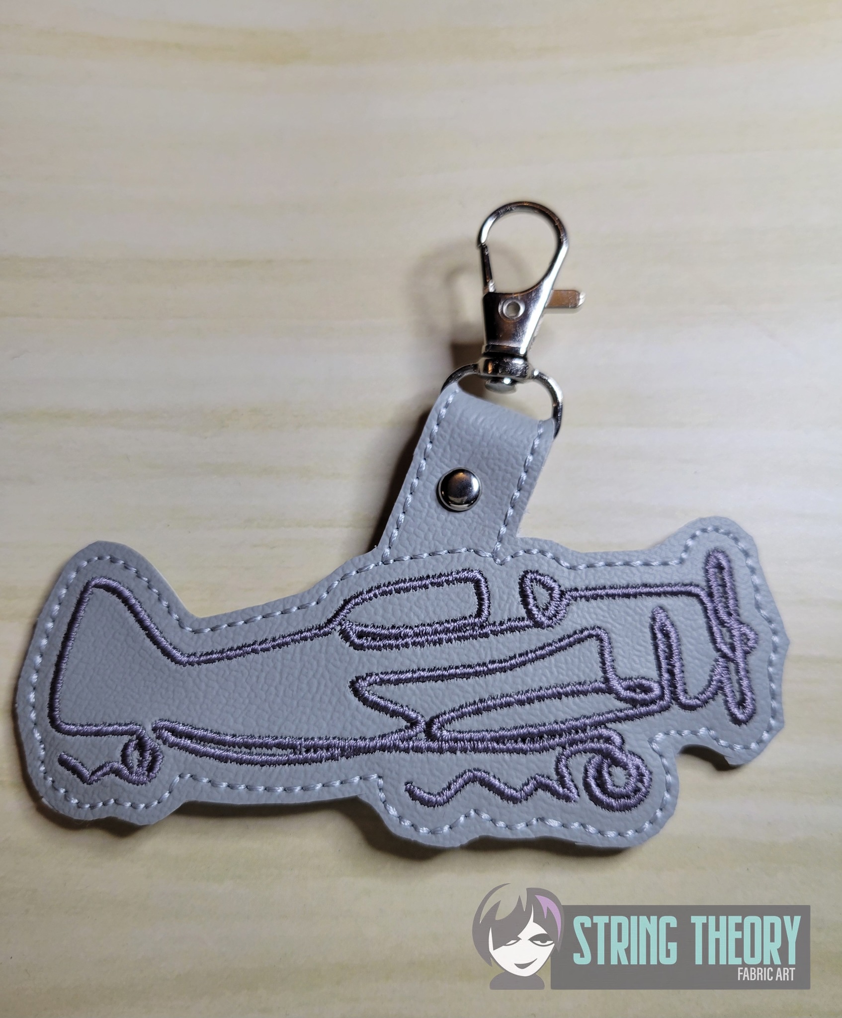 This listing includes an ITH machine embroidery design for a fob, sized for your hoop and your fandom.