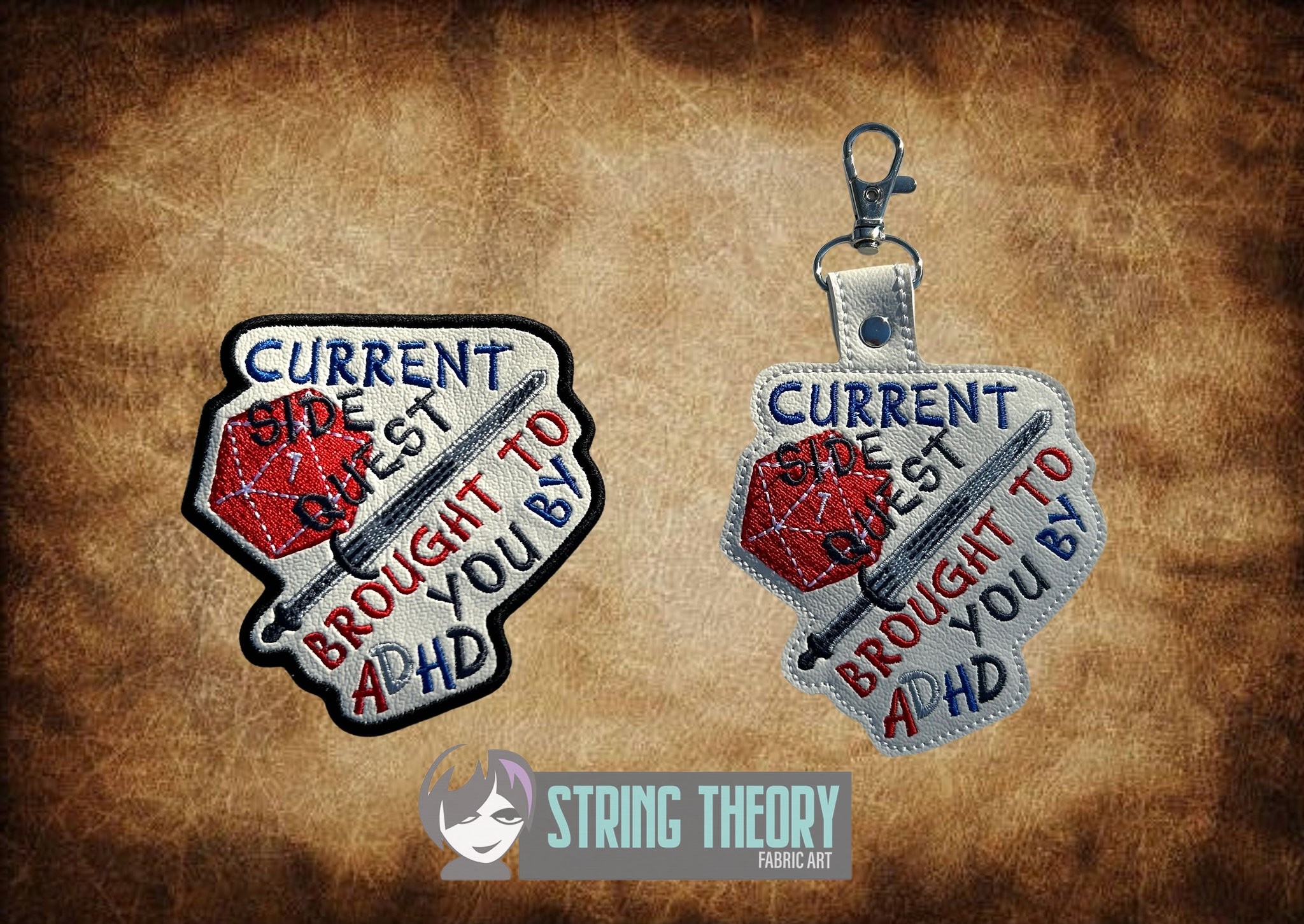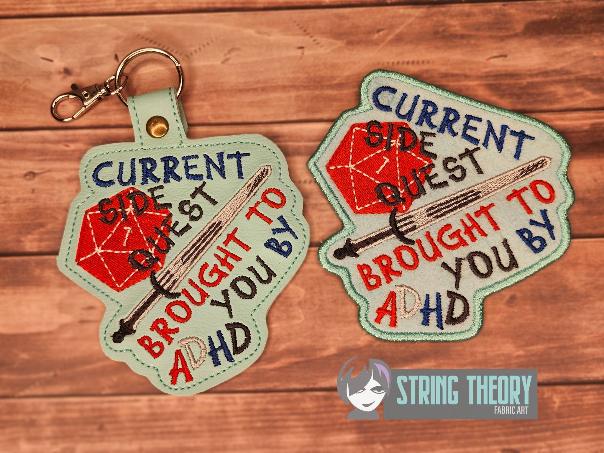 Current Side Quest Brought to you by ADHD fob, patch, bun cover ITH in the hoop Digital Download for Machine Embroidery Pattern, Design (4×4 Hoop)