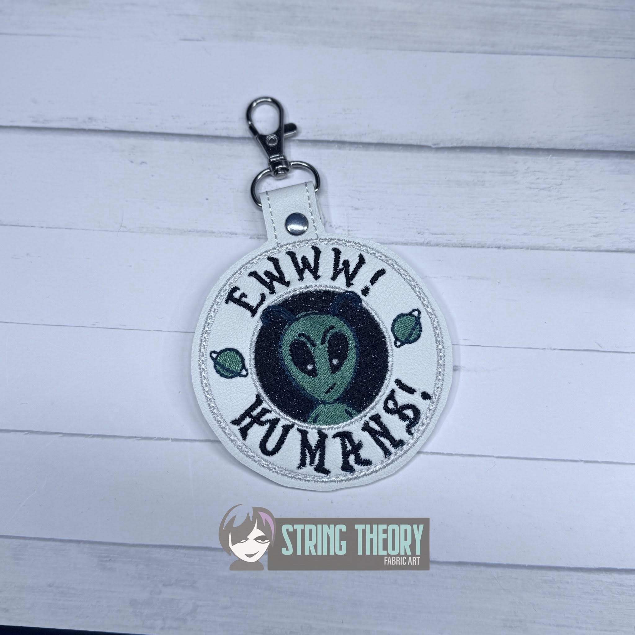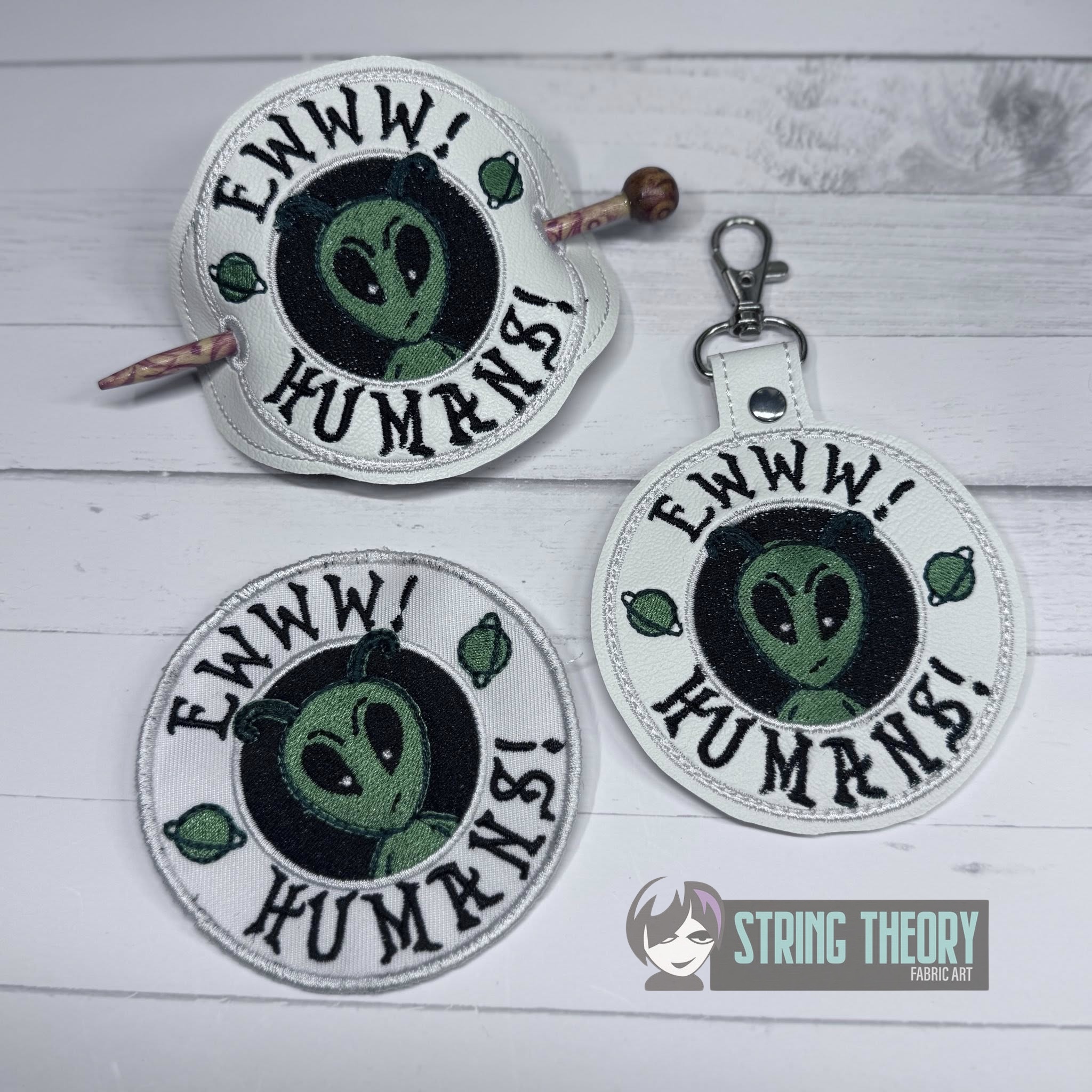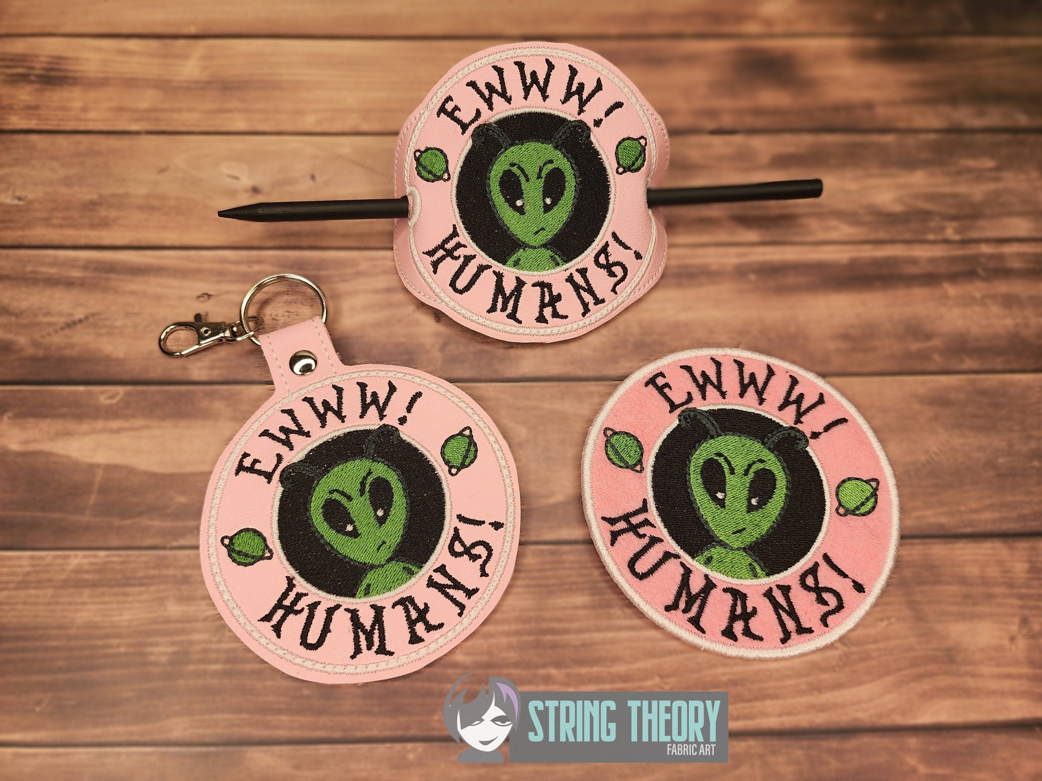 Eww! Humans Alien fob, patch, bun cover ITH in the hoop Digital Download for Machine Embroidery Pattern, Design (4×4 Hoop)