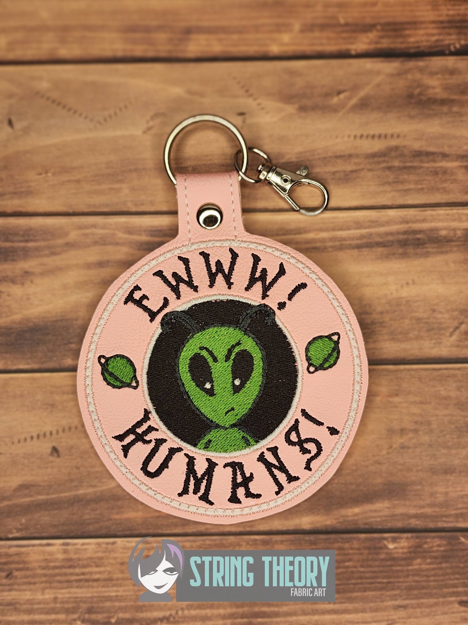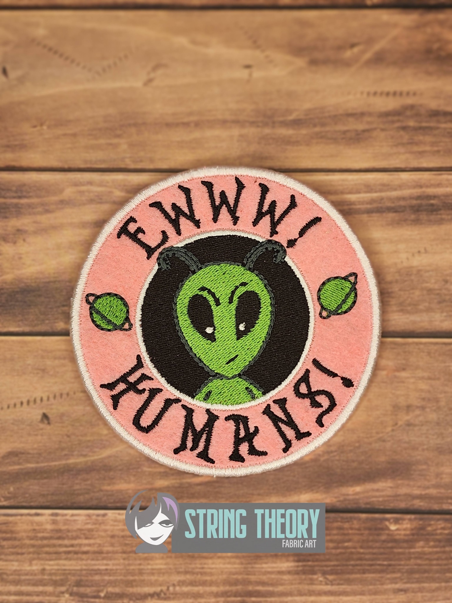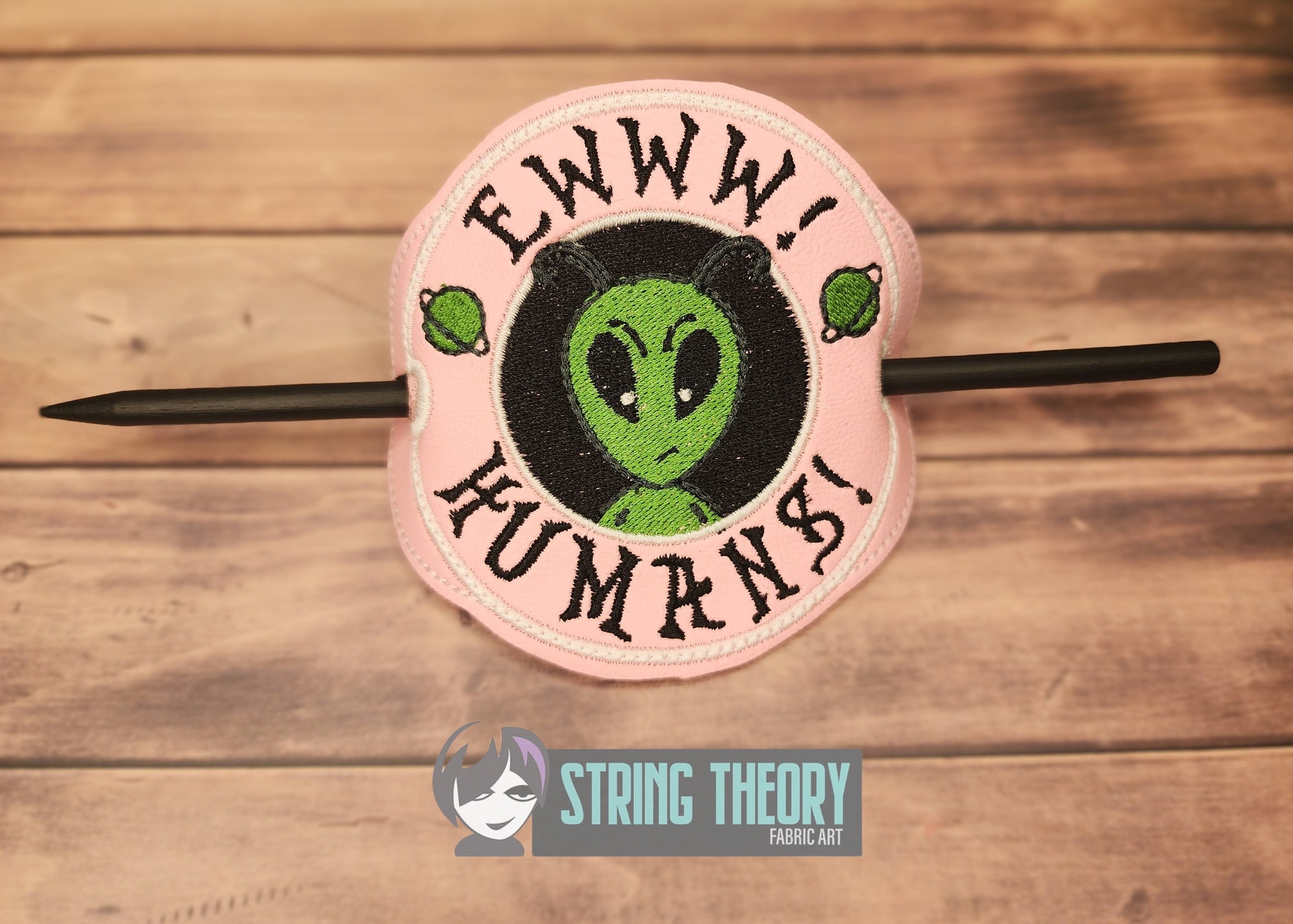 Eww! Humans Alien fob, patch, bun cover ITH in the hoop Digital Download for Machine Embroidery Pattern, Design (4×4 Hoop)