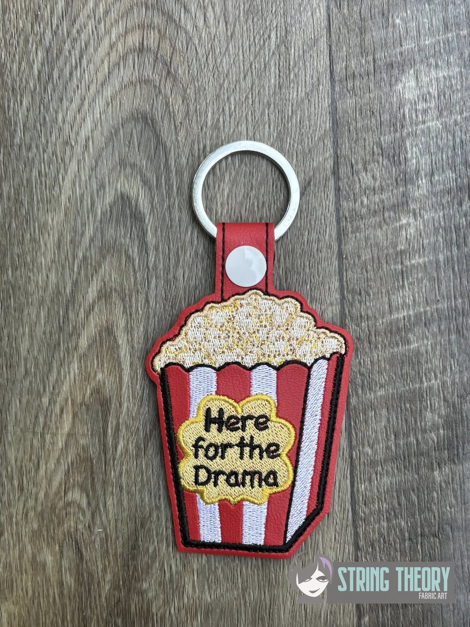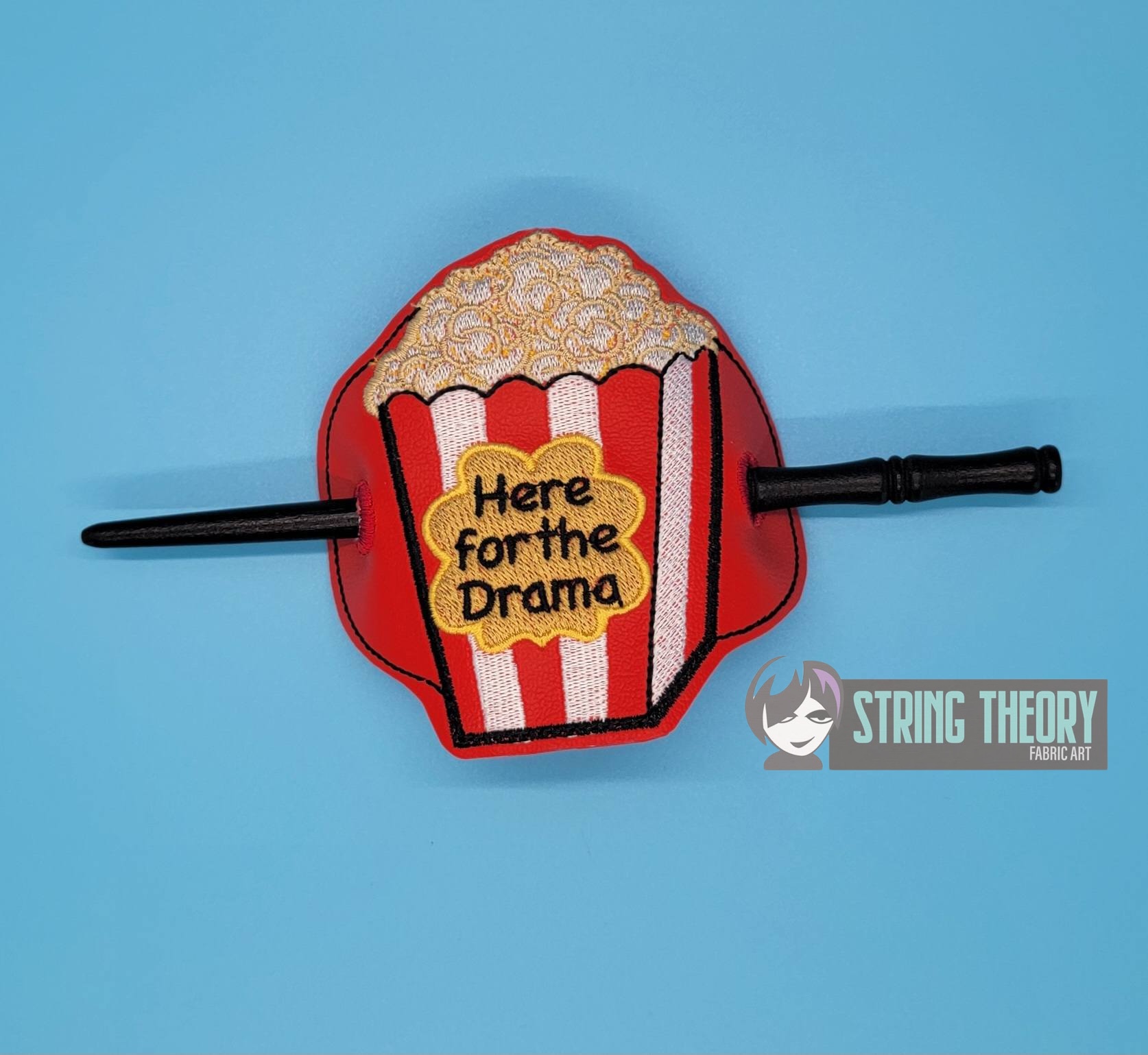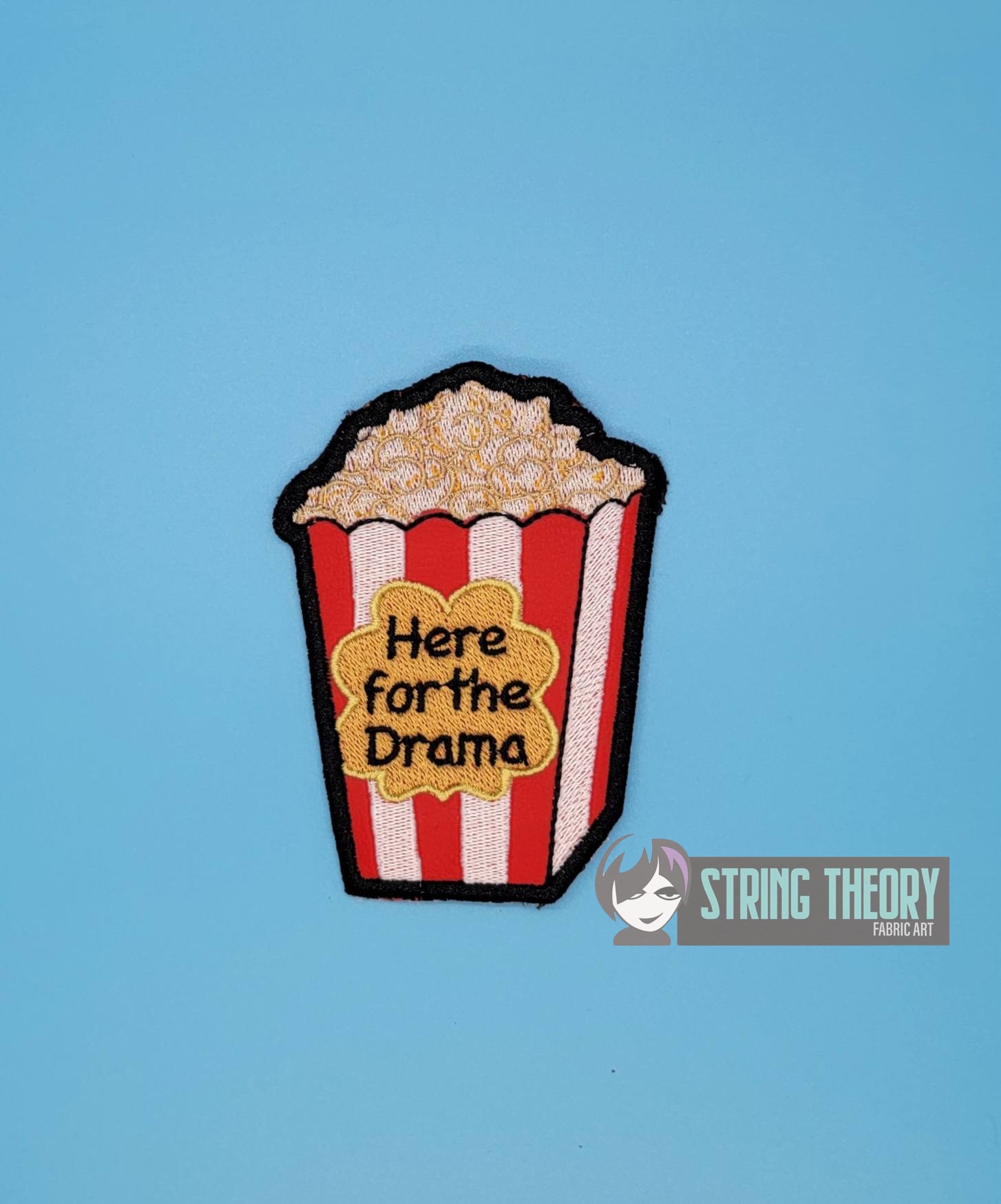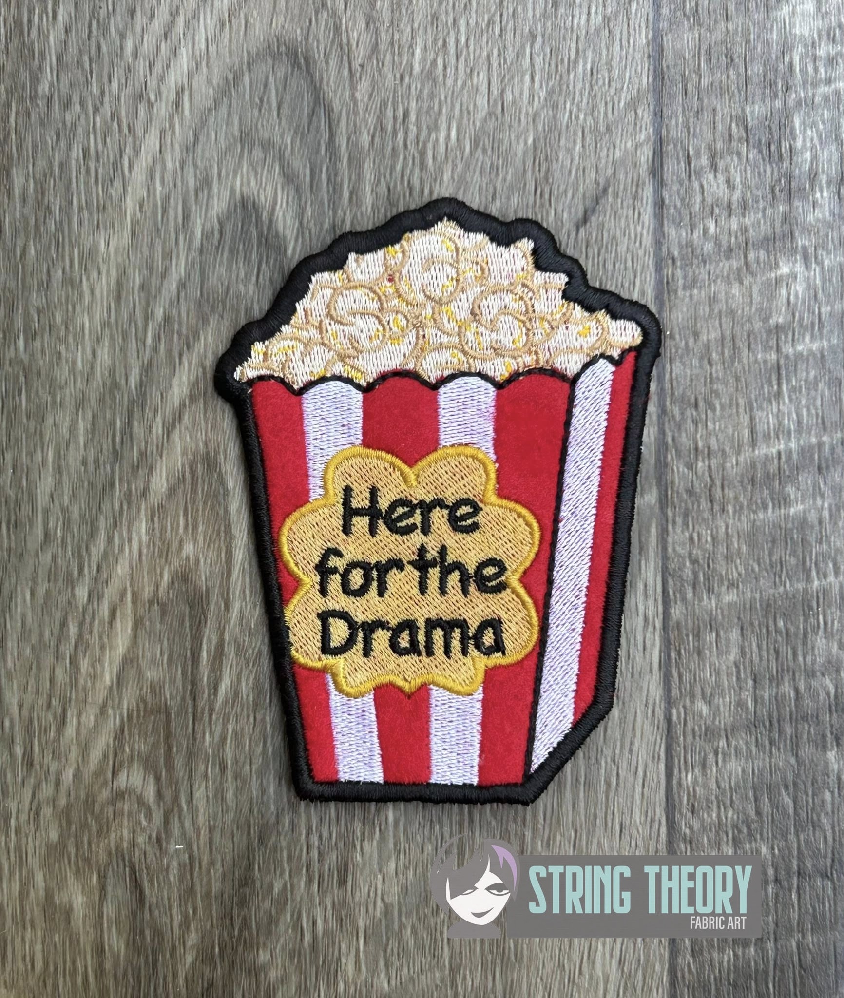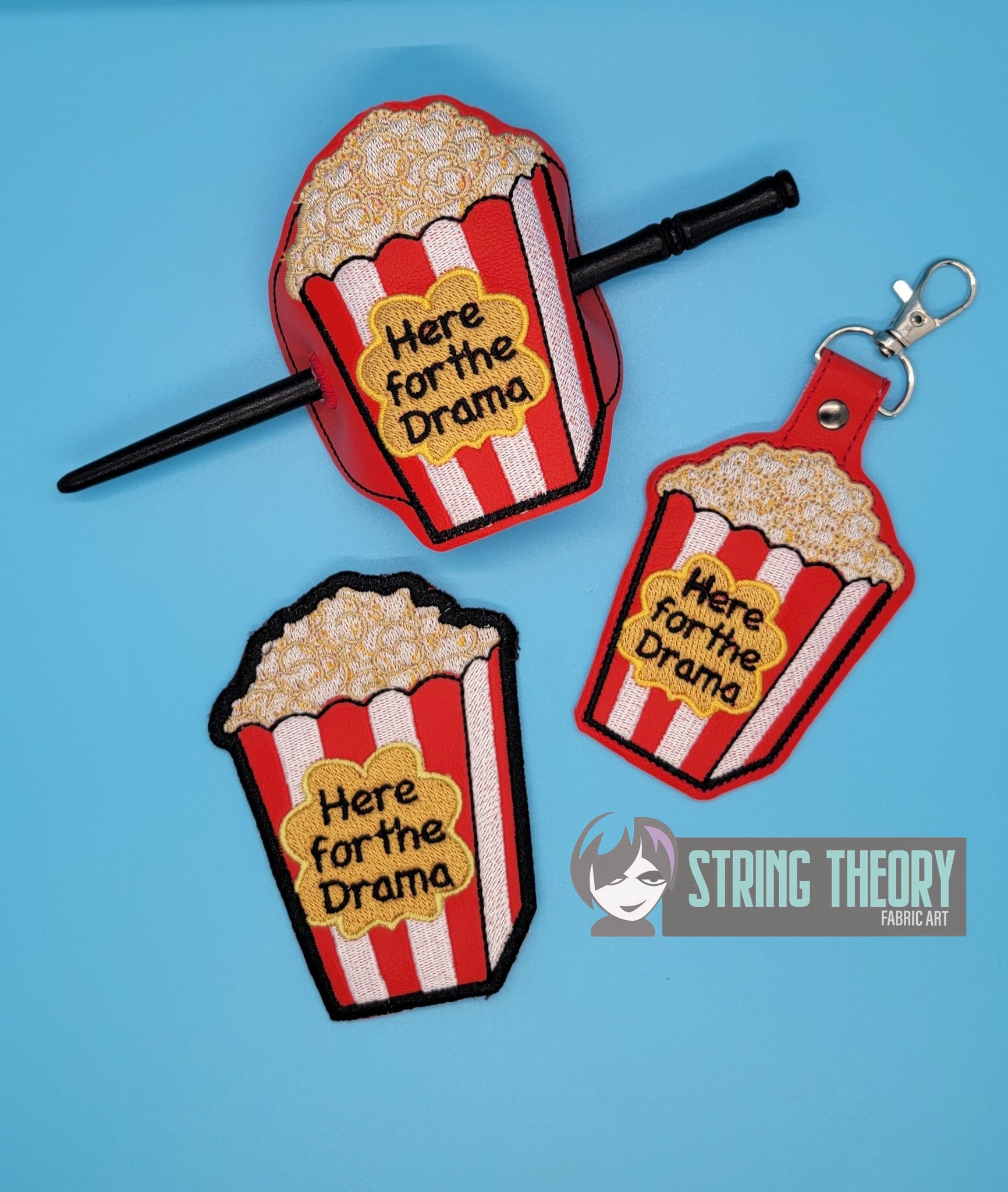 Here for the Drama Popcorn fob, patch, bun cover ITH in the hoop Digital Download for Machine Embroidery Pattern, Design (4×4 Hoop)