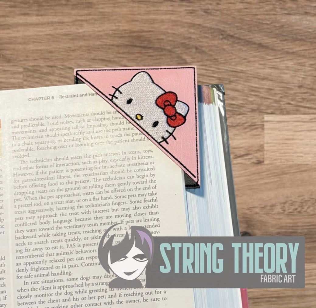 This listing includes an ITH machine embroidery design for a corner bookmark, sized for your hoop.