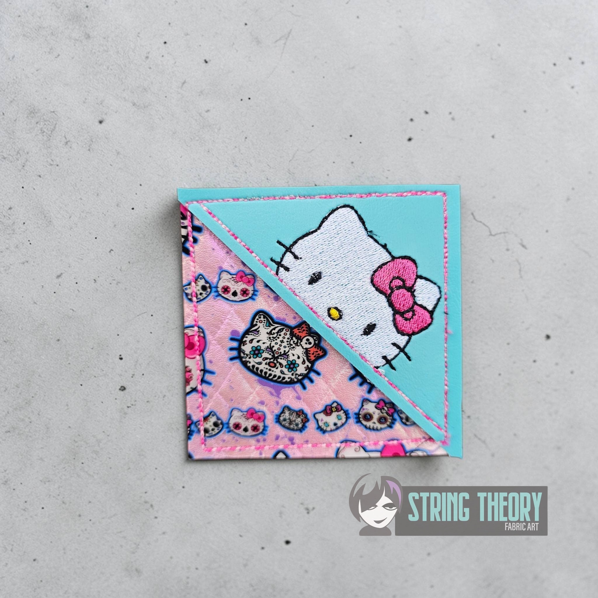 Hi Cat Face Corner Bookmark ITH in the hoop fob Digital Download for Machine Embroidery Pattern, Design (4×4 Hoop)