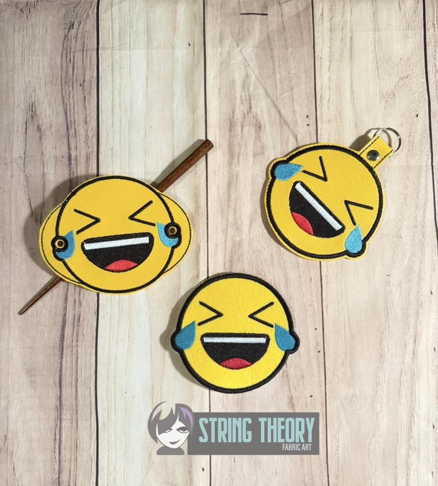 Laughing Emoji fob, patch, bun cover ITH in the hoop Digital Download for Machine Embroidery Pattern, Design (4×4 Hoop)