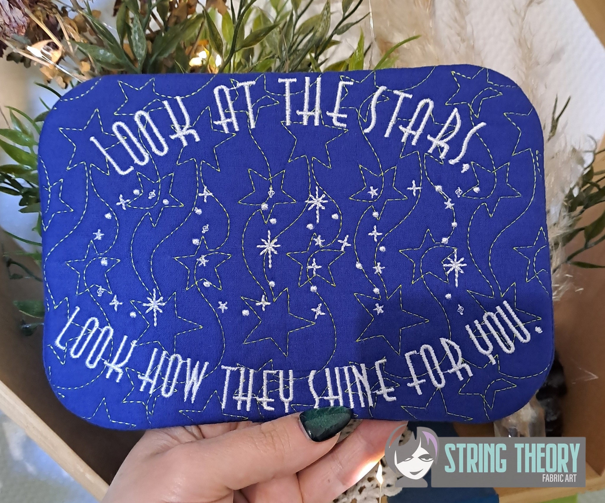 Look at the Stars, See How They Shine for You Mug Rug ITH in the hoop Digital Download for Machine Embroidery Pattern, Design (5×7, 6×10 Hoop)