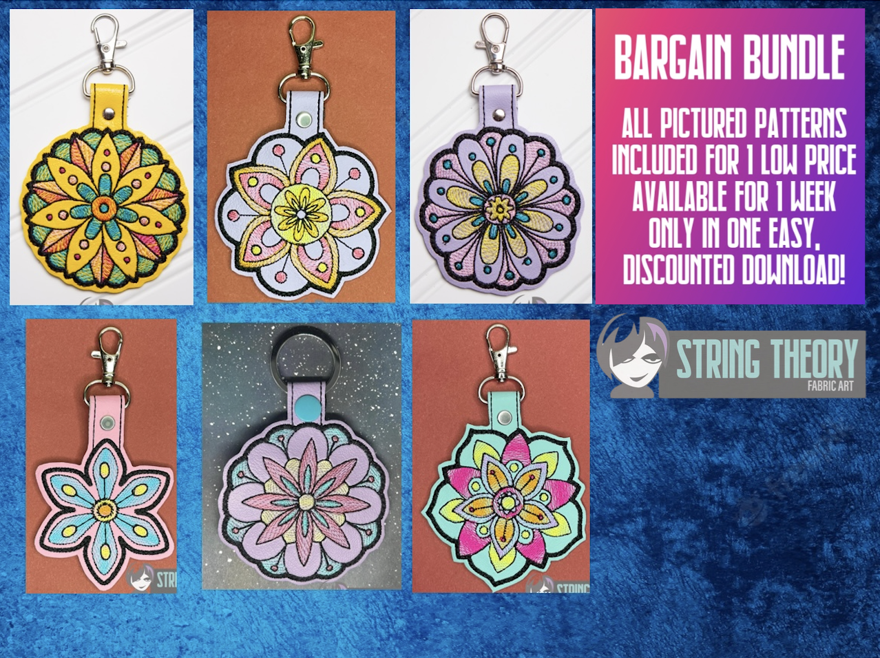 It also coordinates nicely with applique designs, full fill embroidery, and in-the-hoop (ITH) projects.