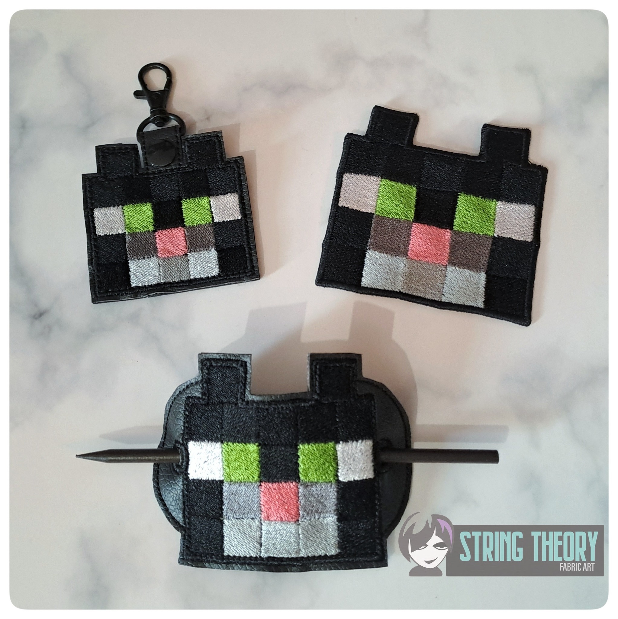 Minecraft – Cat fob, patch, bun cover ITH in the hoop fob Digital Download for Machine Embroidery Pattern, Design (4×4 Hoop)