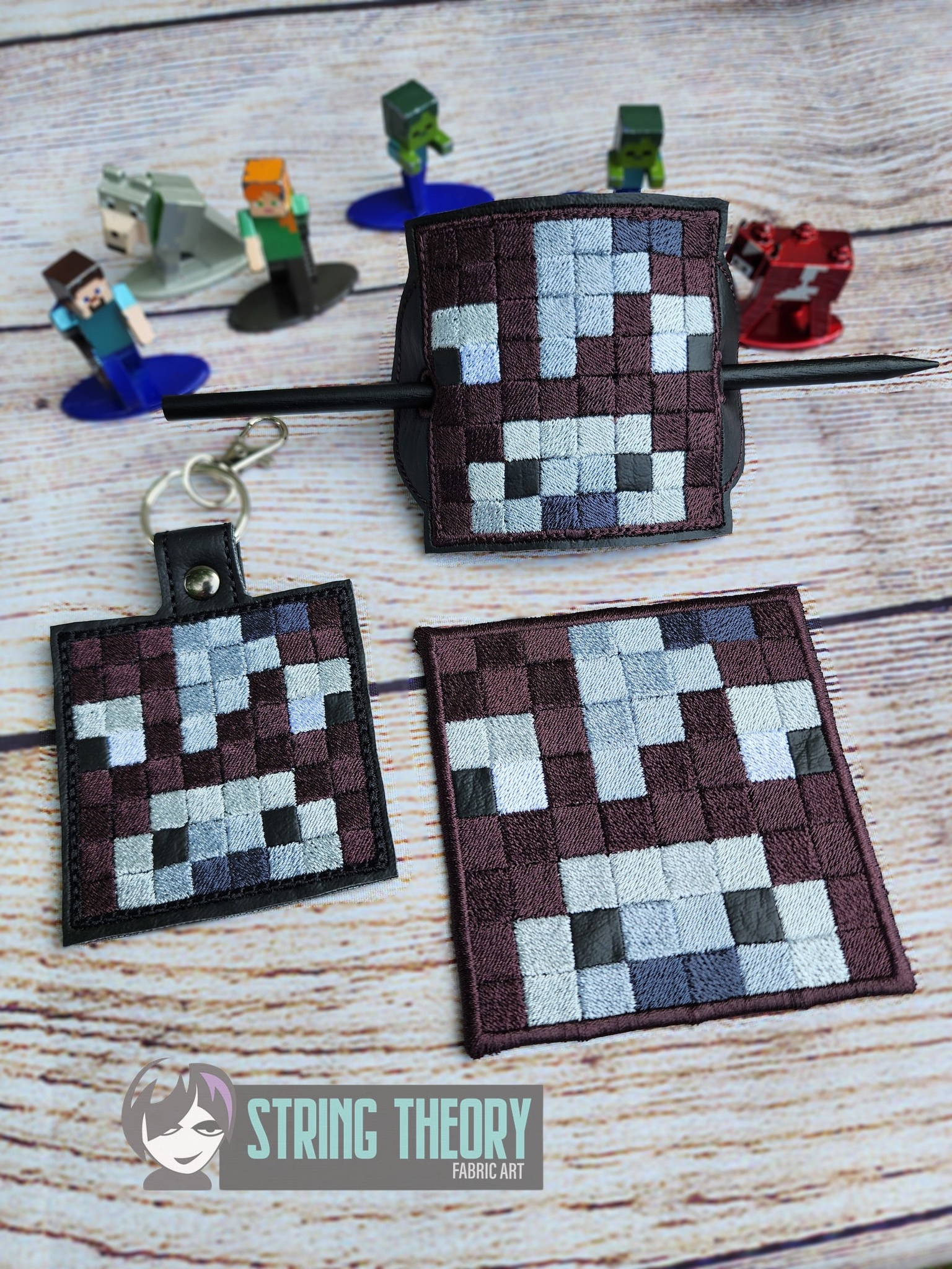 Minecraft – Cow fob, patch, bun cover ITH in the hoop fob Digital Download for Machine Embroidery Pattern, Design (4×4 Hoop)