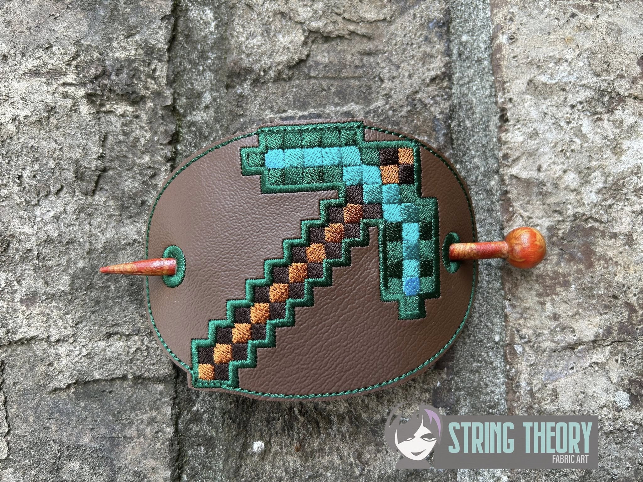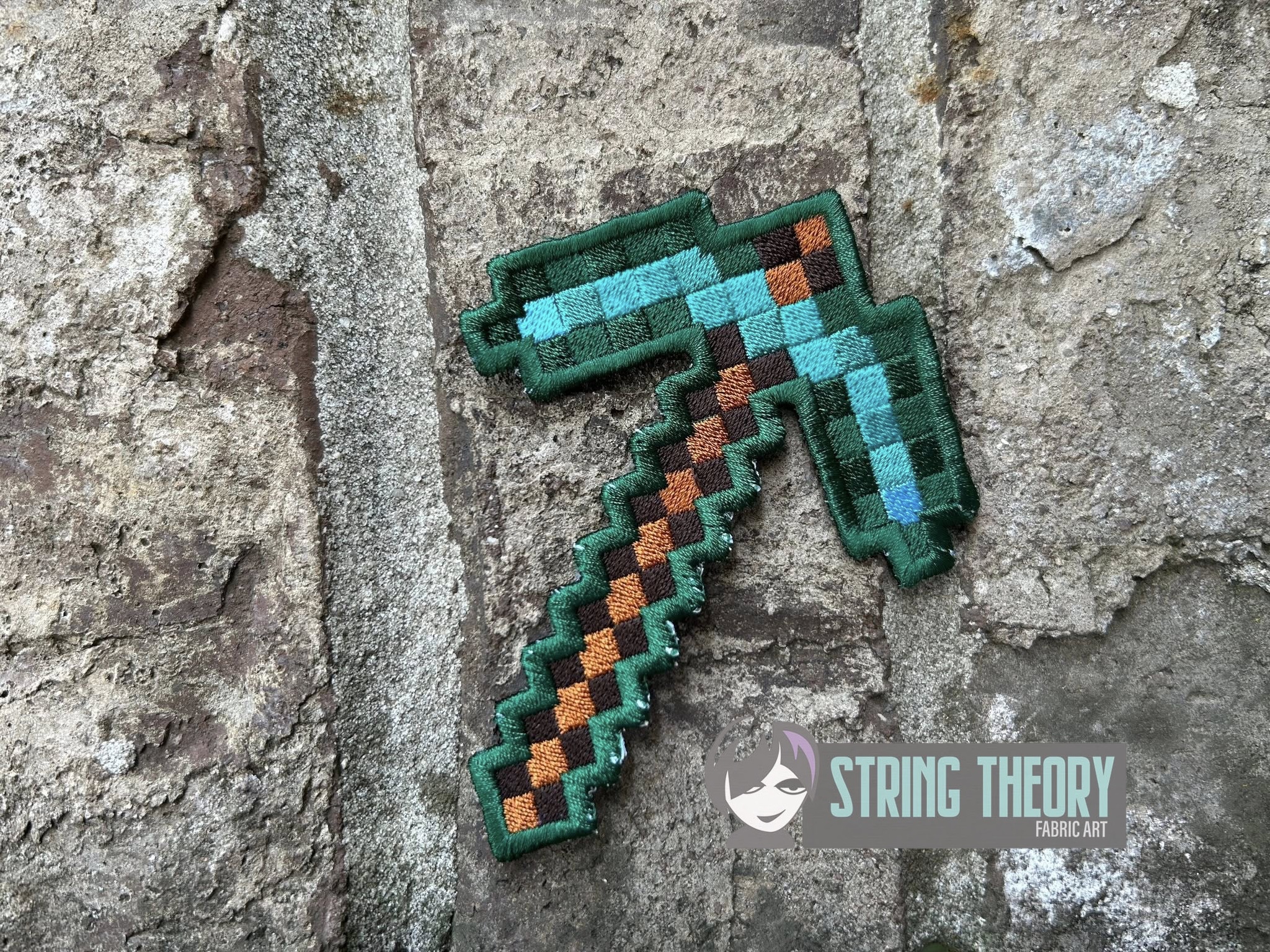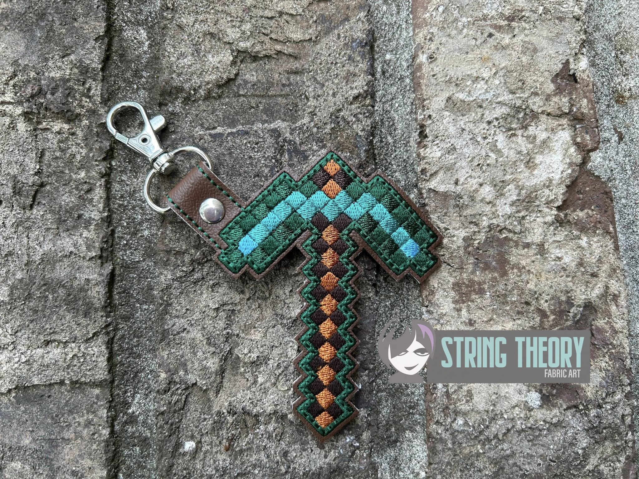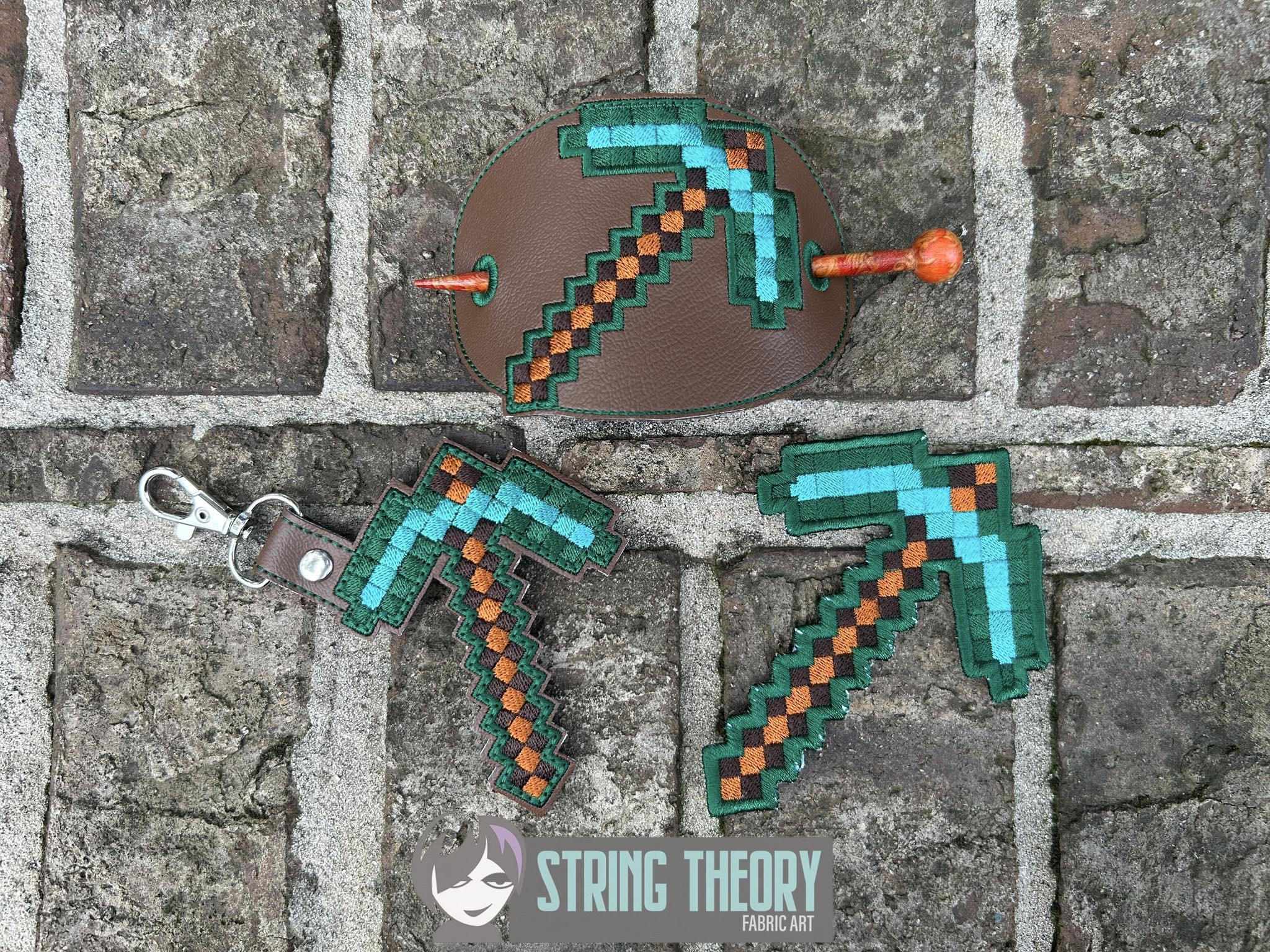 Minecraft – Pickaxe fob, patch, bun cover ITH in the hoop fob Digital Download for Machine Embroidery Pattern, Design (4×4 Hoop)