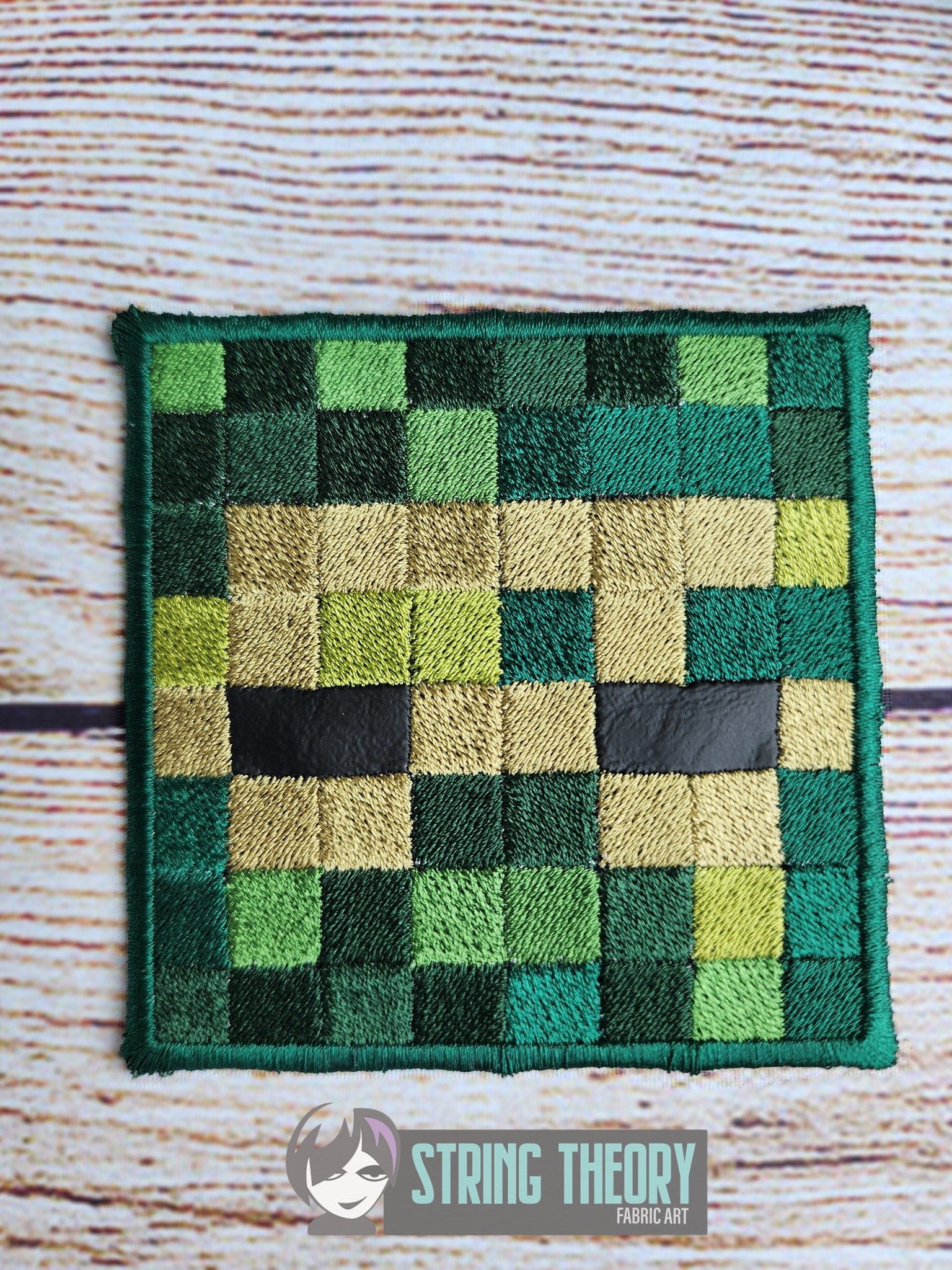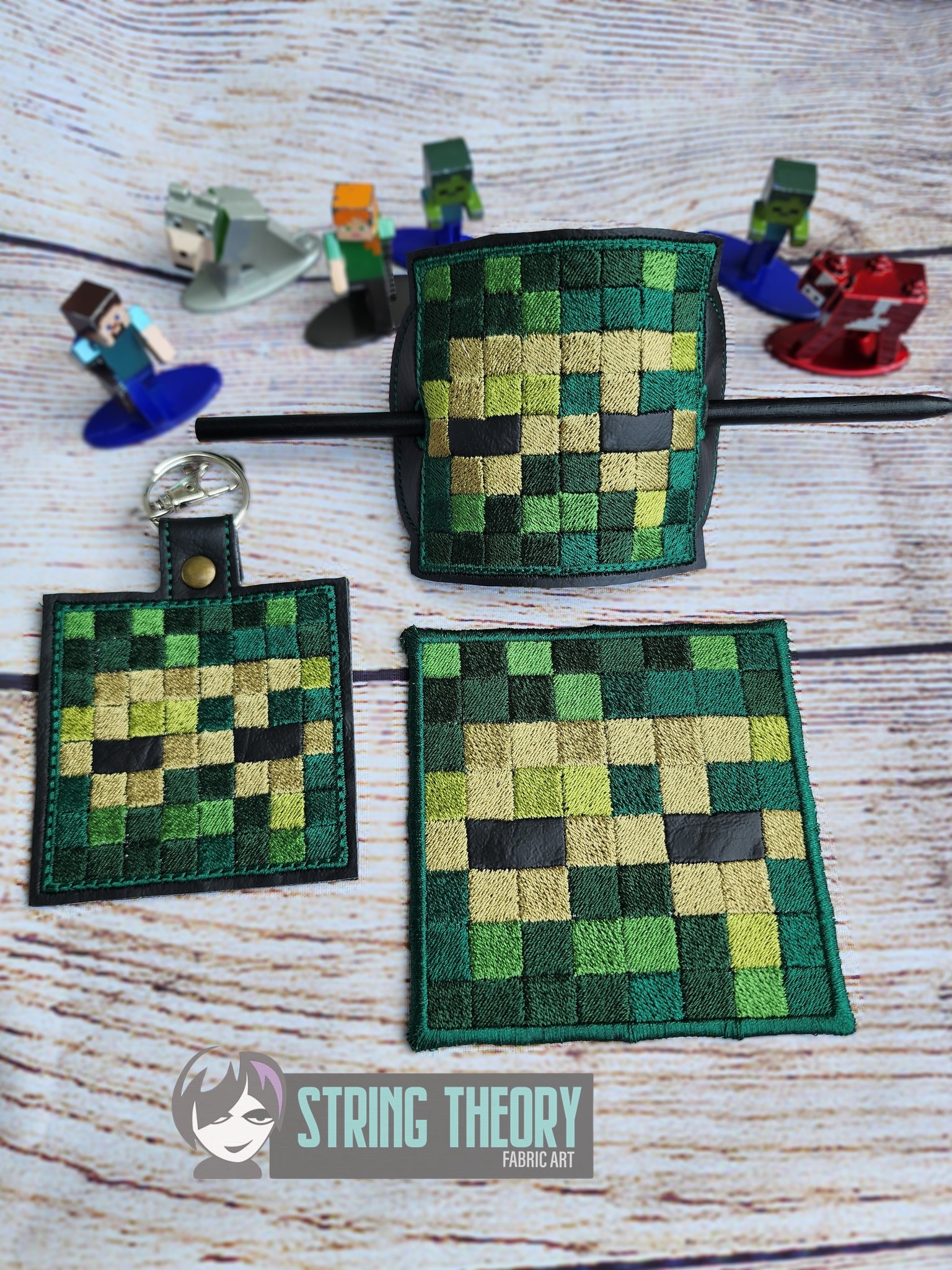 Minecraft – Zombie fob, patch, bun cover ITH in the hoop fob Digital Download for Machine Embroidery Pattern, Design (4×4 Hoop)
