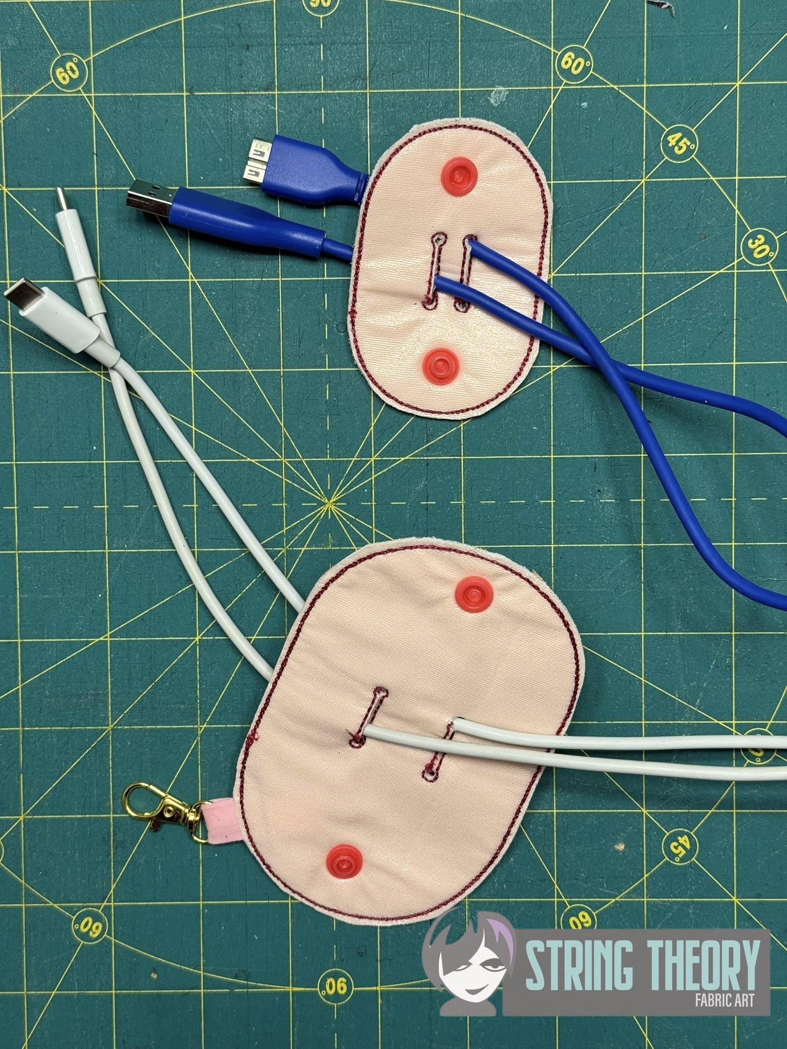 This listing includes an ITH machine embroidery design for a cord keeper set, sized for your hoop.