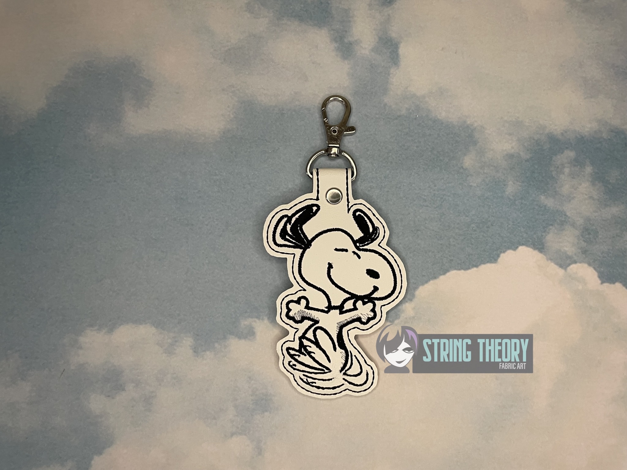 Peanuts – Dancing Snoopy Snap Tab Key Fob ITH in the hoop fob Digital Download for Machine Embroidery Pattern, Design (4×4 Hoop)