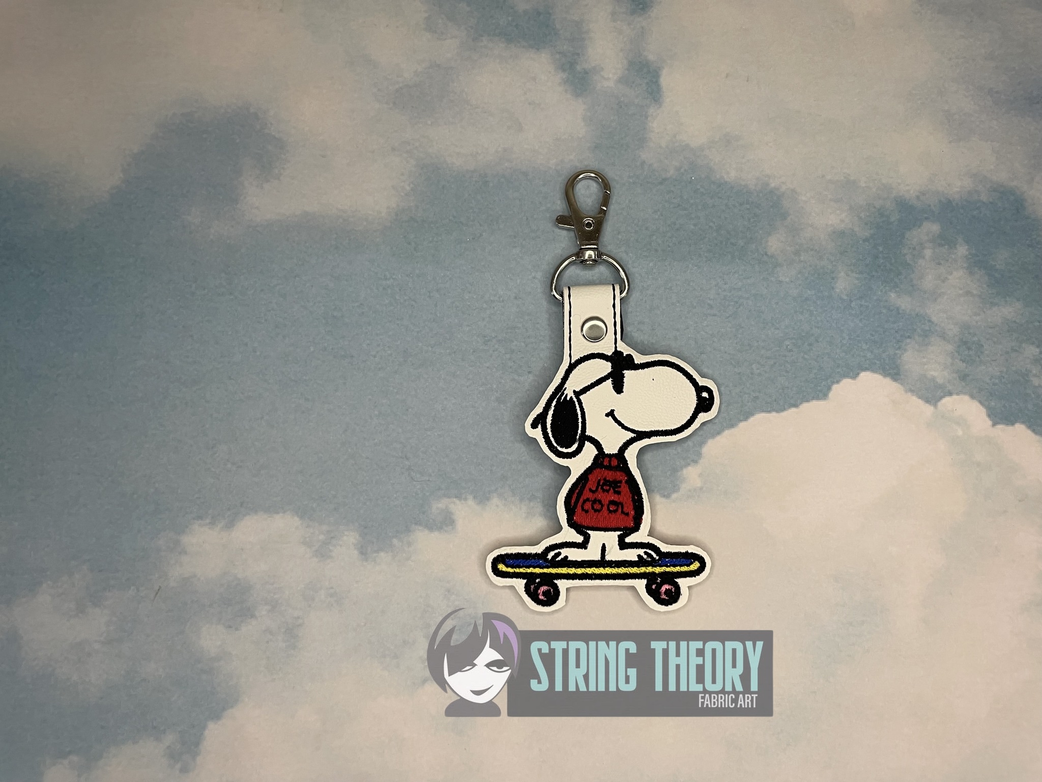 Peanuts – Joe Cool Snoopy Snap Tab Key Fob ITH in the hoop fob Digital Download for Machine Embroidery Pattern, Design (4×4 Hoop)