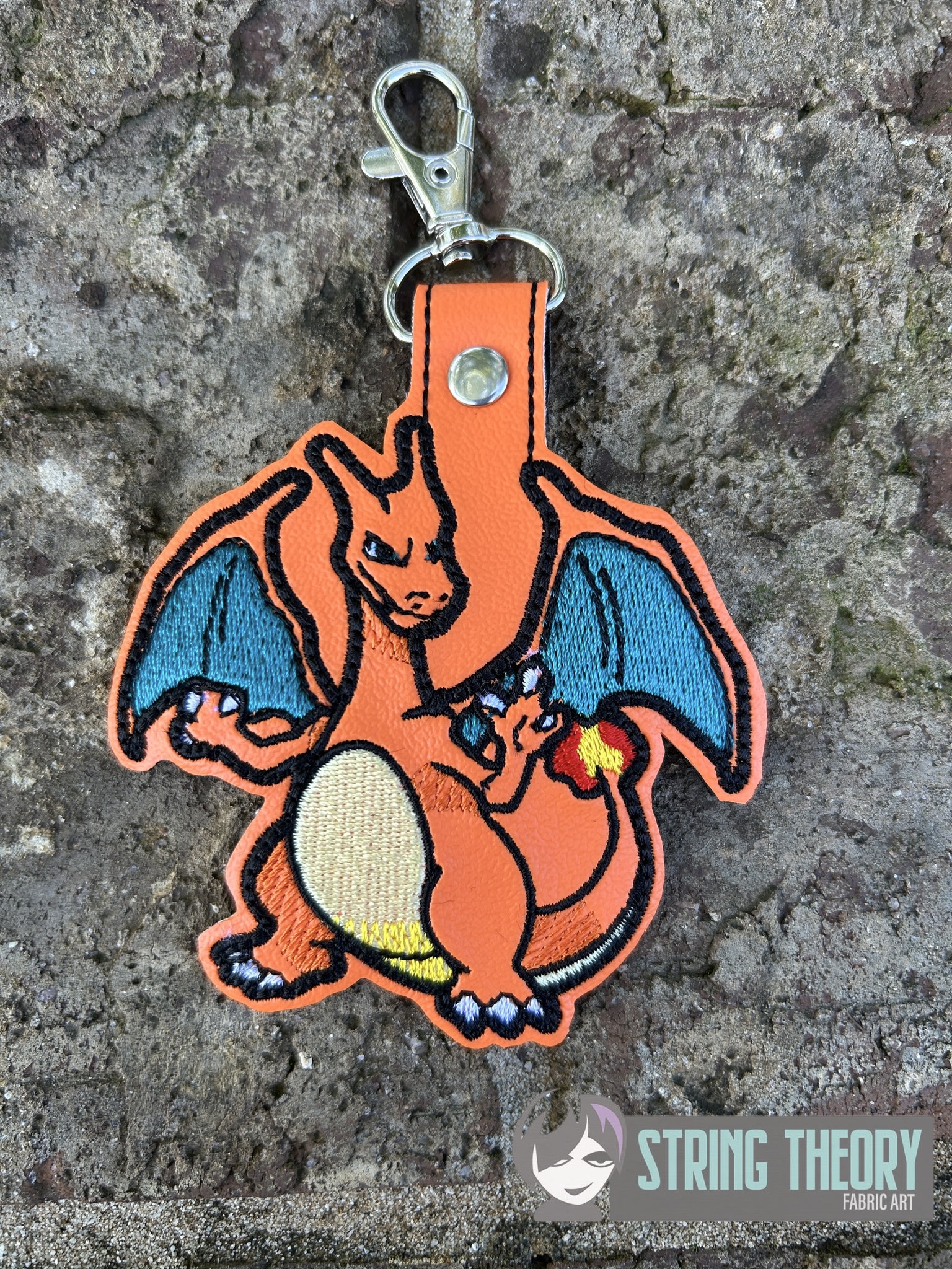Pokémon – Charizard Snap Tab Key Fob ITH in the hoop fob Digital Download for Machine Embroidery Pattern, Design (4×4 Hoop)