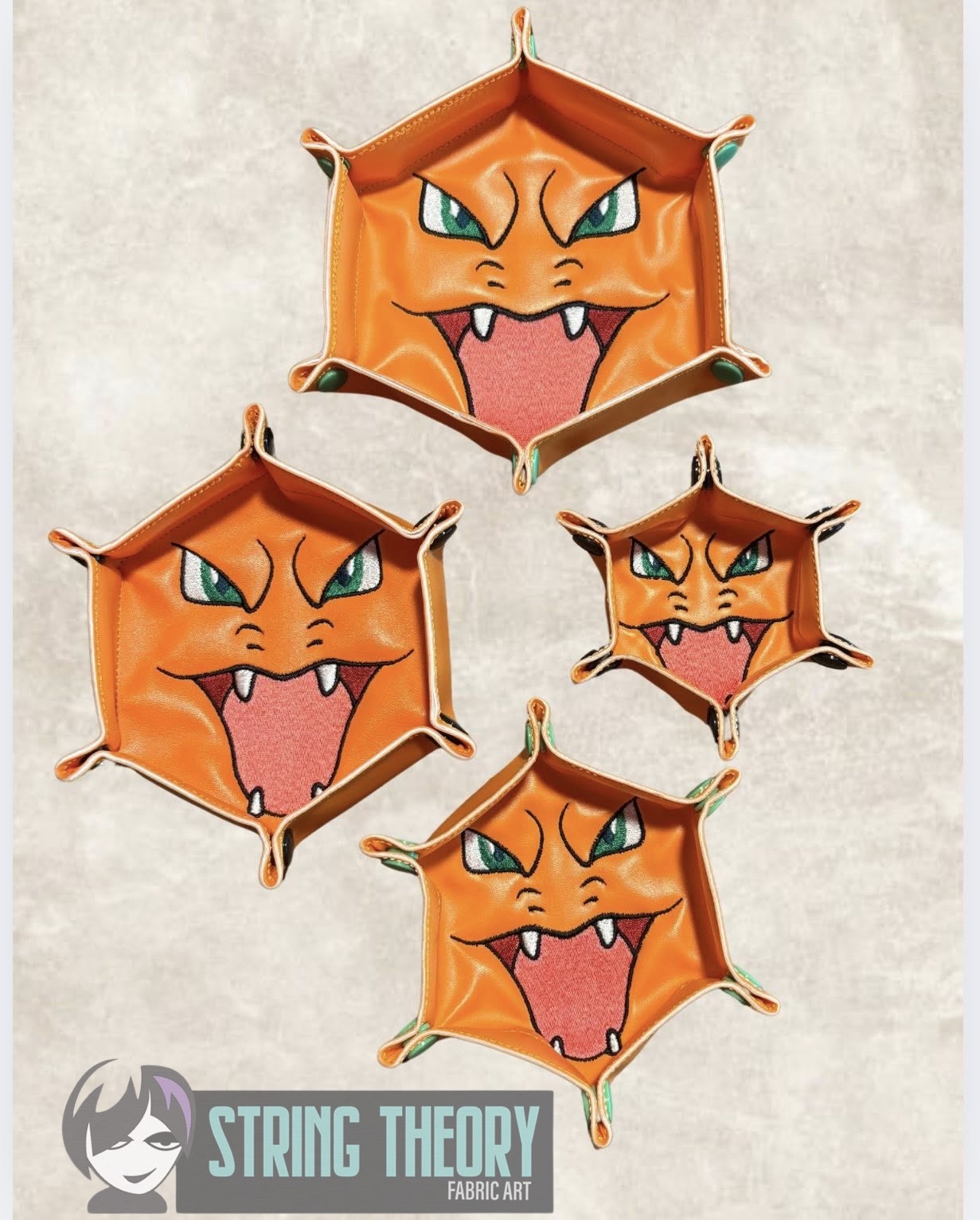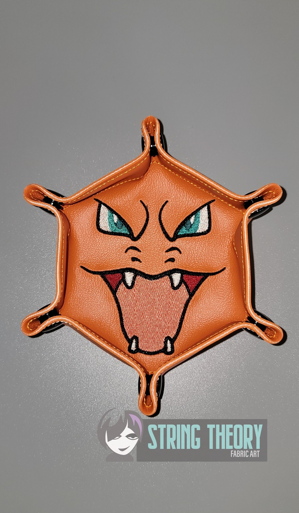 Pokemon – Charizard Hexagonal Dice Tray ITH in the hoop Digital Download for Machine Embroidery Pattern, Design (5×7, 6×10, 7×11, 8×12 Hoop)