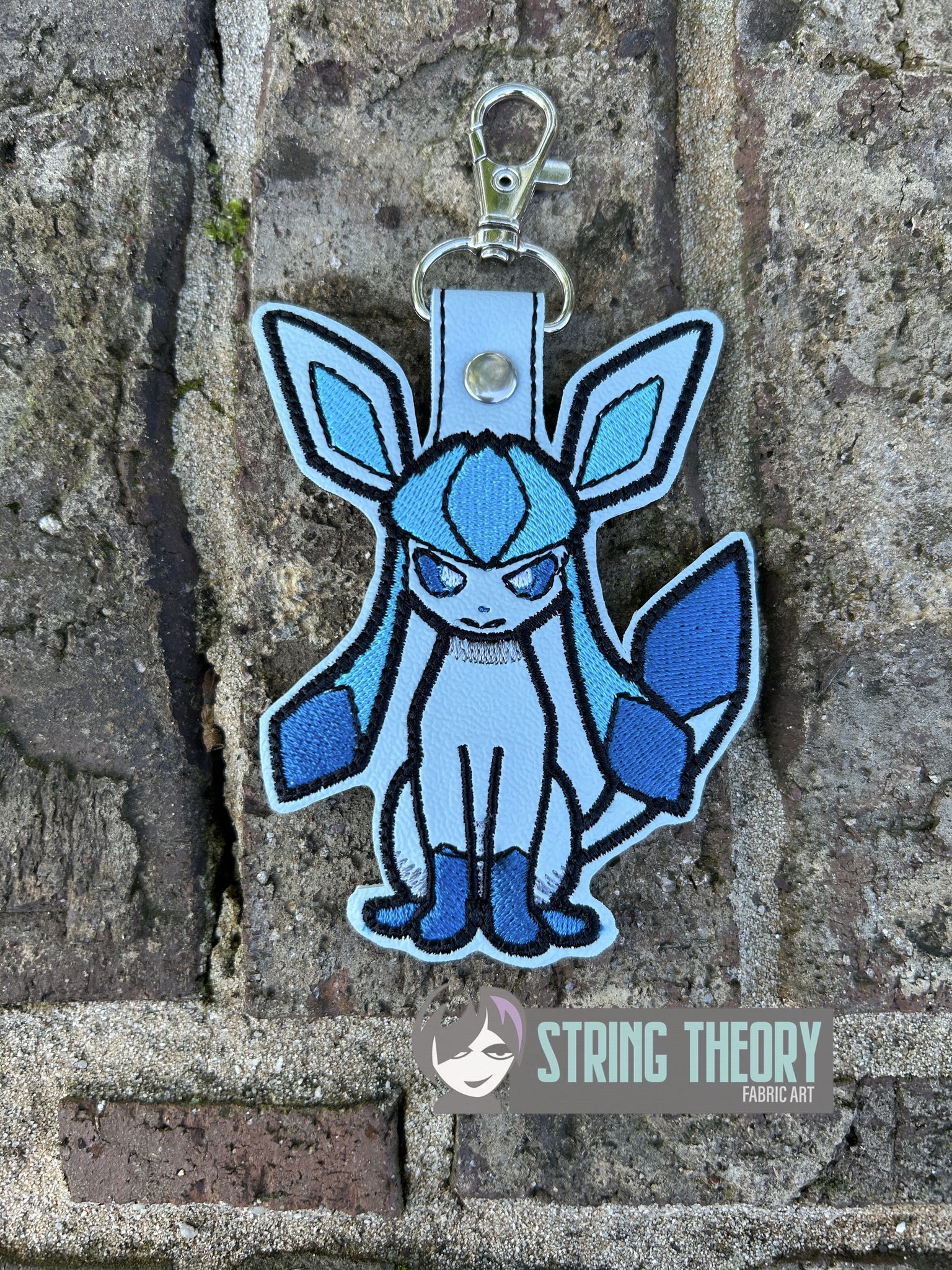 Pokémon – Glaceon Snap Tab Key Fob ITH in the hoop fob Digital Download for Machine Embroidery Pattern, Design (4×4 Hoop)
