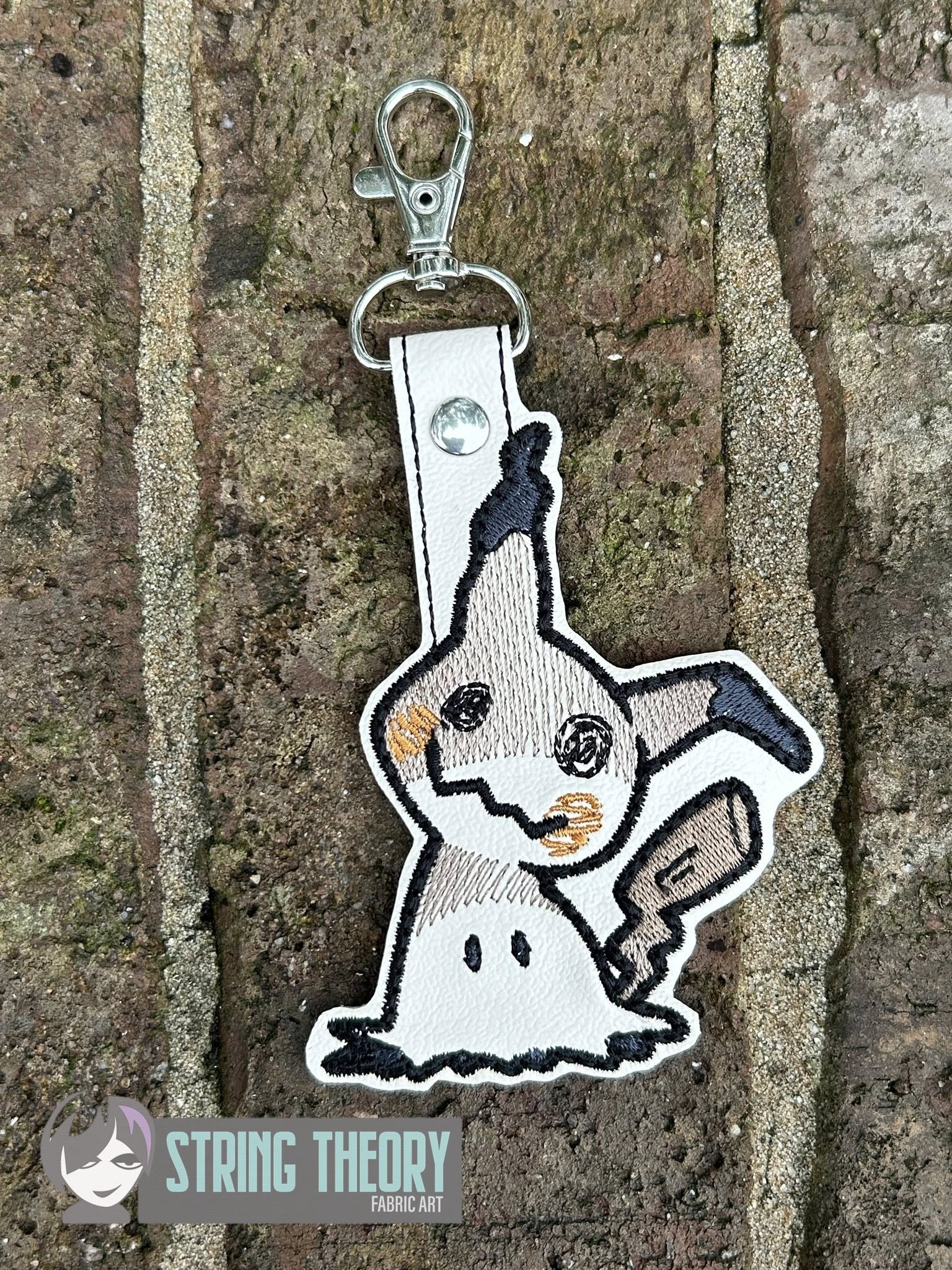 Fob measures approximately 2 9/16” x 3 5/16” with a ½” x 1 ½” tab to fold over the slip ring or lobster claw.