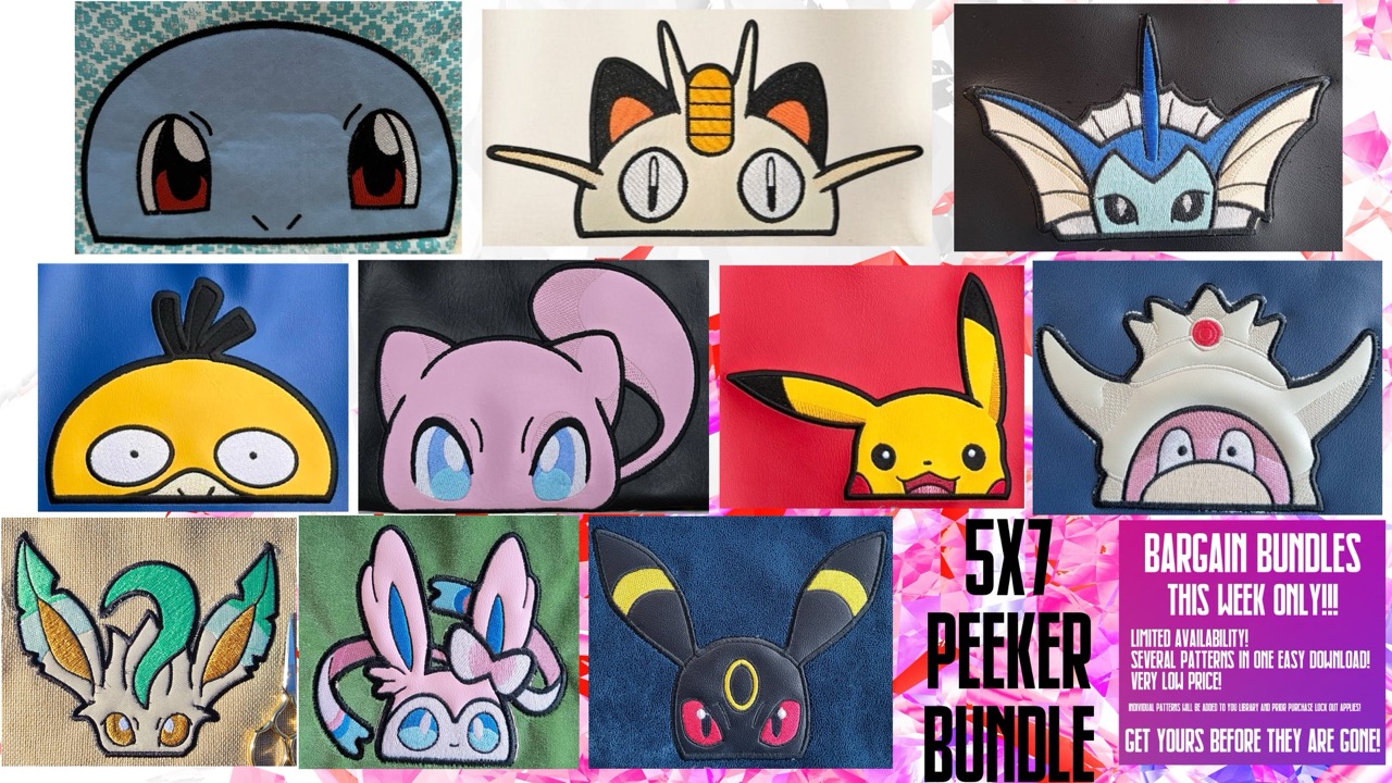This listing includes ITH Peeker embroidery designs for your hoop and your fandom.