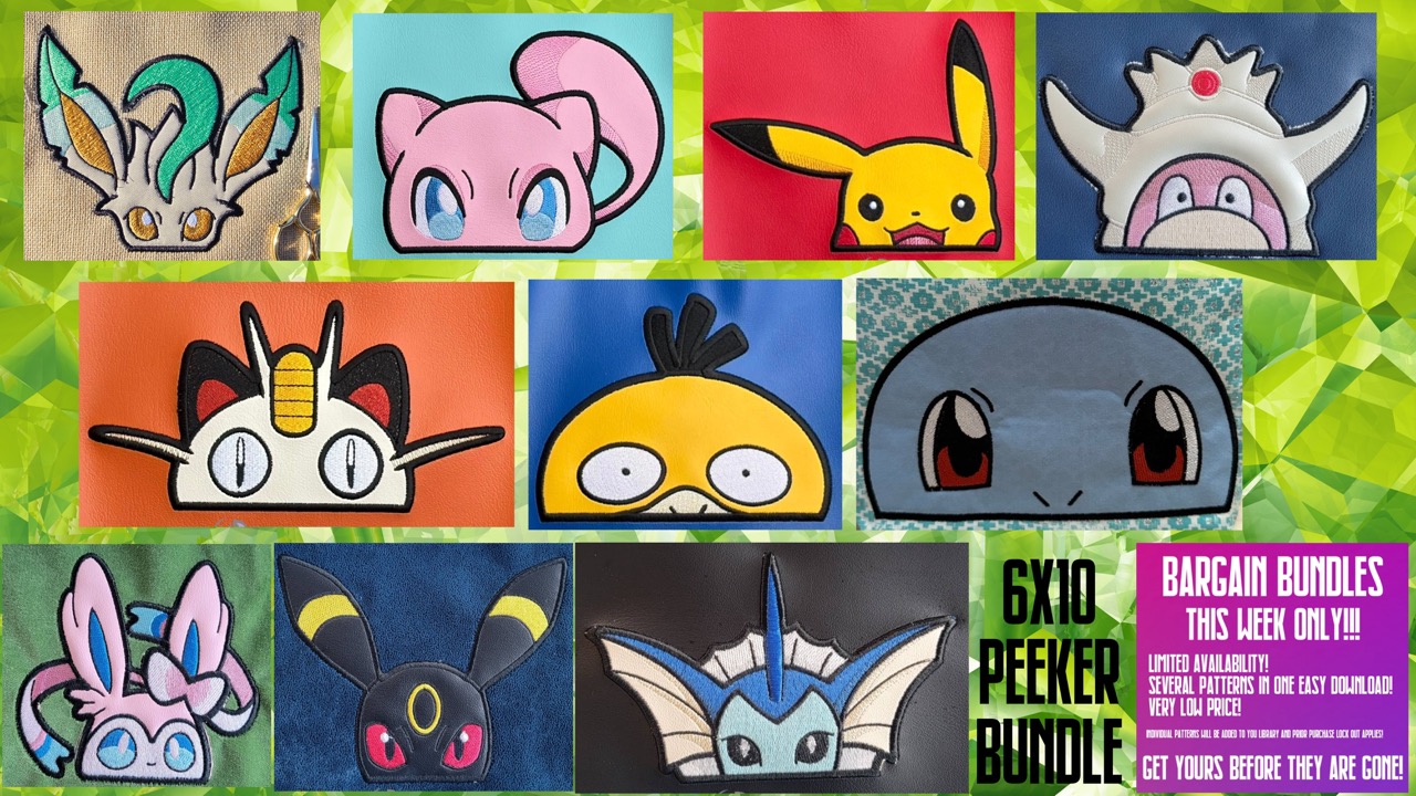This listing includes ITH Peeker embroidery designs for your hoop and your fandom.
