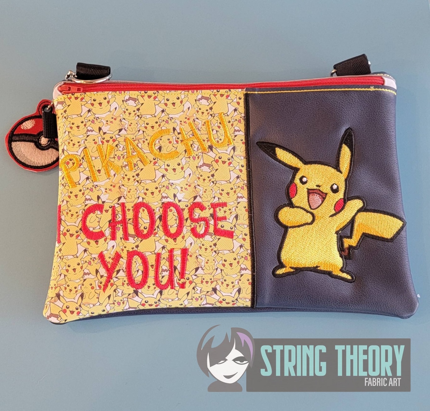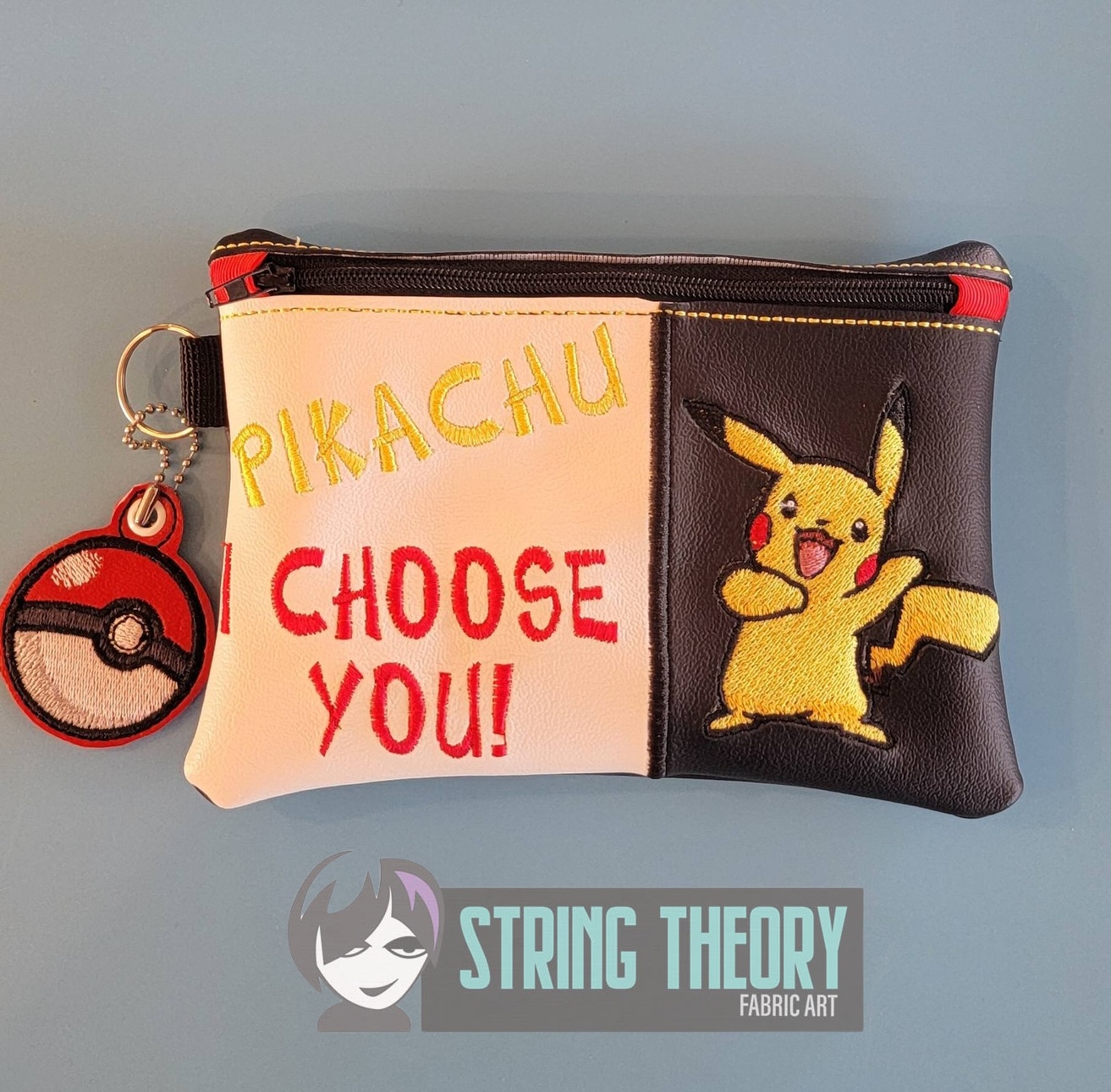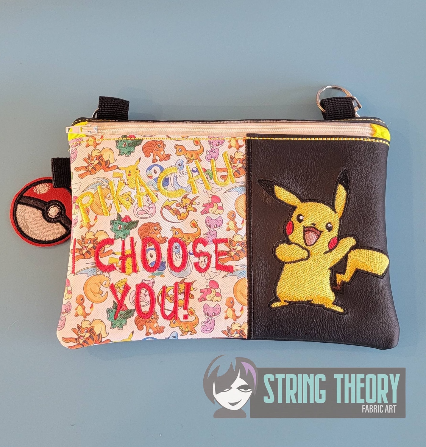 This listing includes an ITH machine embroidery design for a zip bag sized for your hoop and your fandom.
