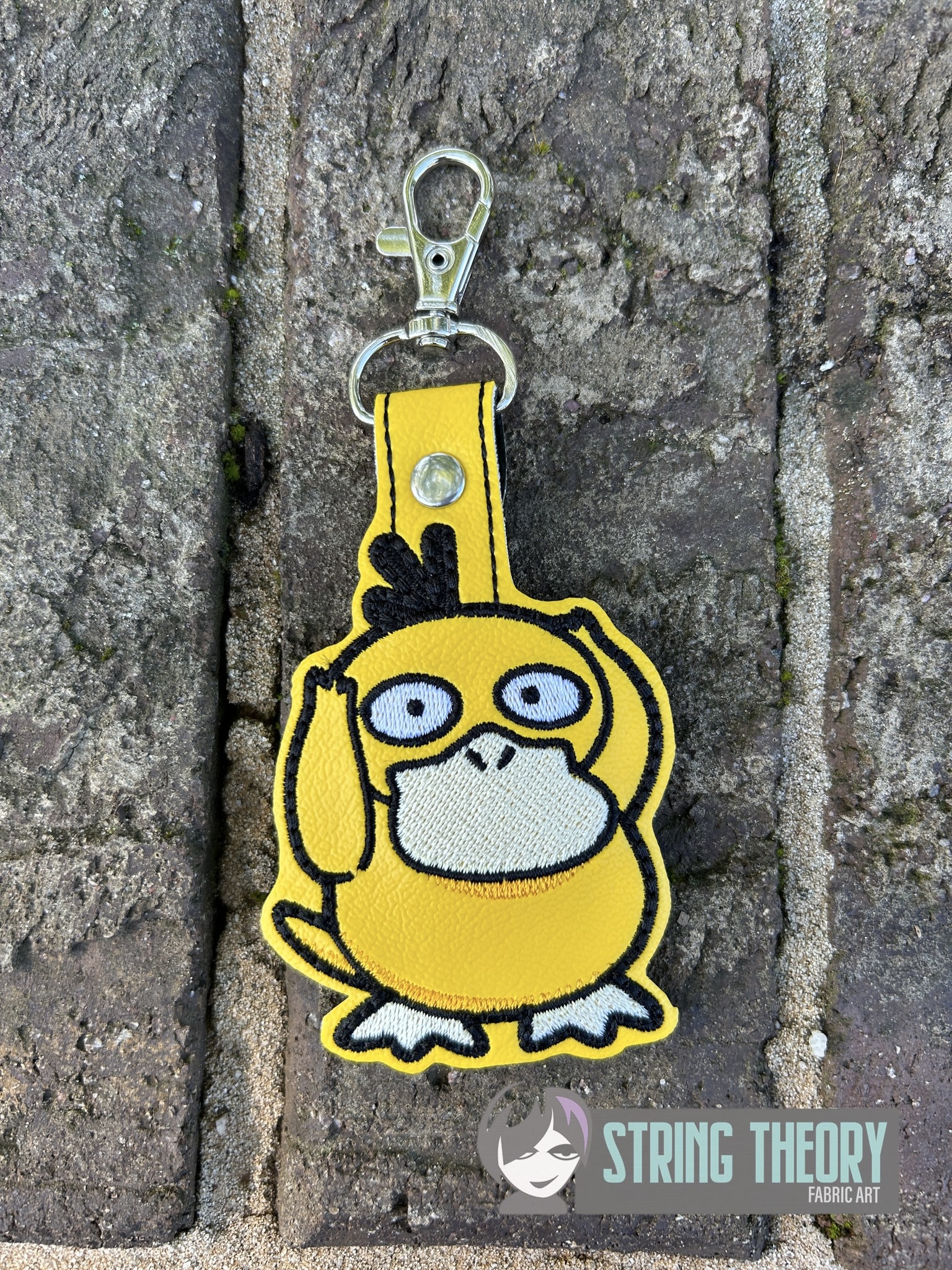 Pokémon – Psyduck Snap Tab Key Fob ITH in the hoop fob Digital Download for Machine Embroidery Pattern, Design (4×4 Hoop)