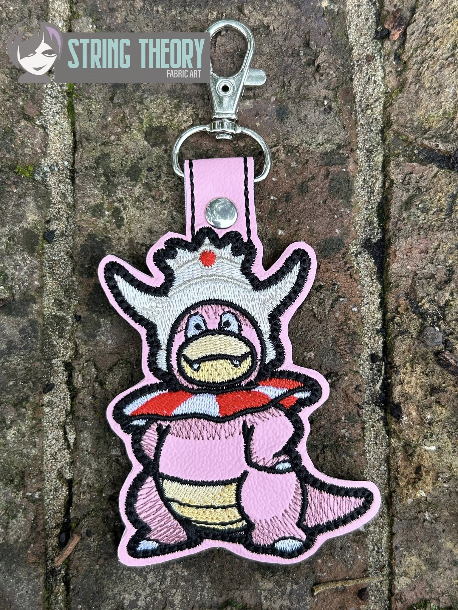 Fob measures approximately 2 5/16” x 3 1/16” with a ½” x 1 ½” tab to fold over the slip ring or lobster claw.