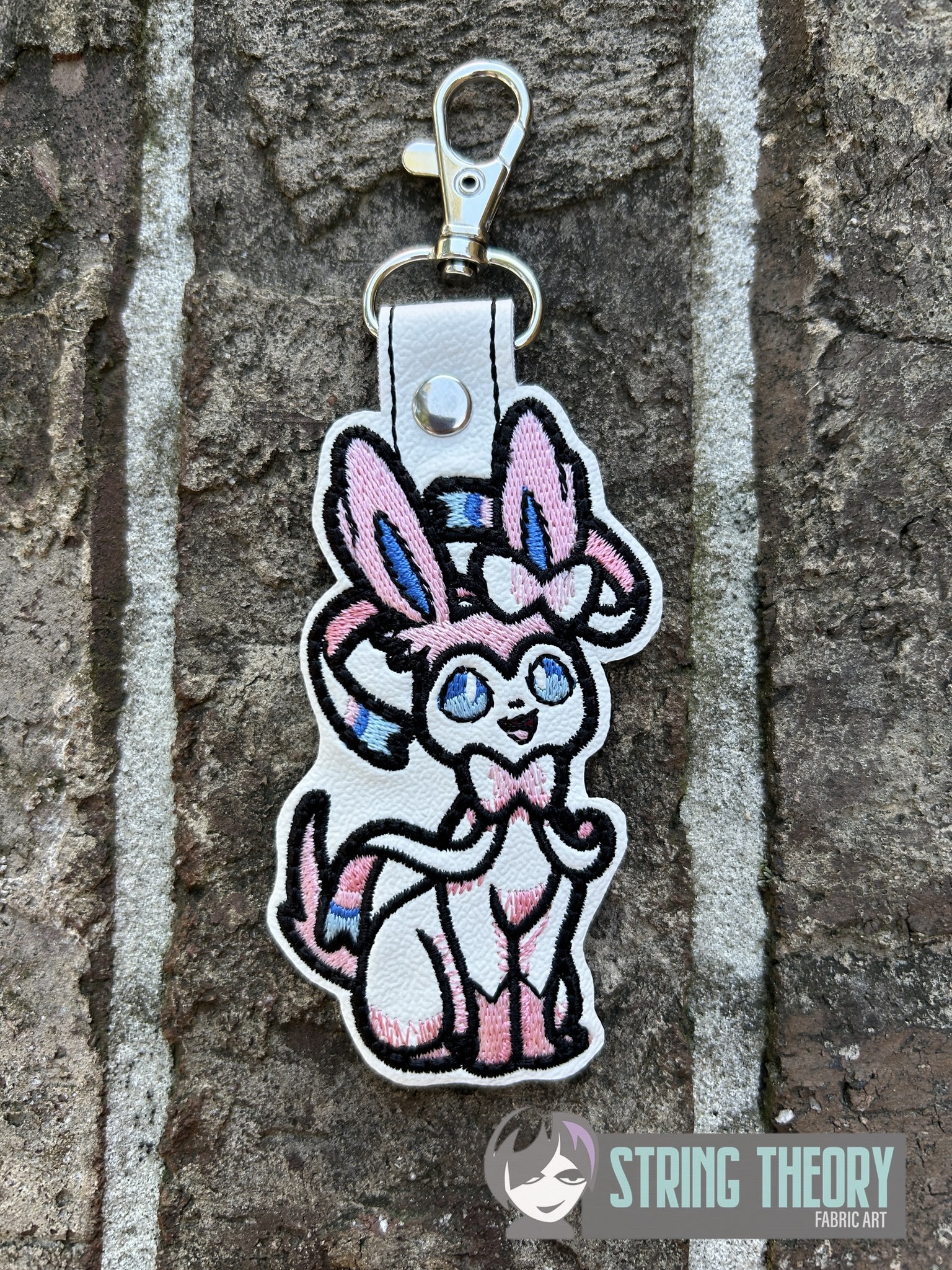 Fob measures approximately 1 13/16” x 3 5/16” with a ½” x 1 ½” tab to fold over the slip ring or lobster claw.