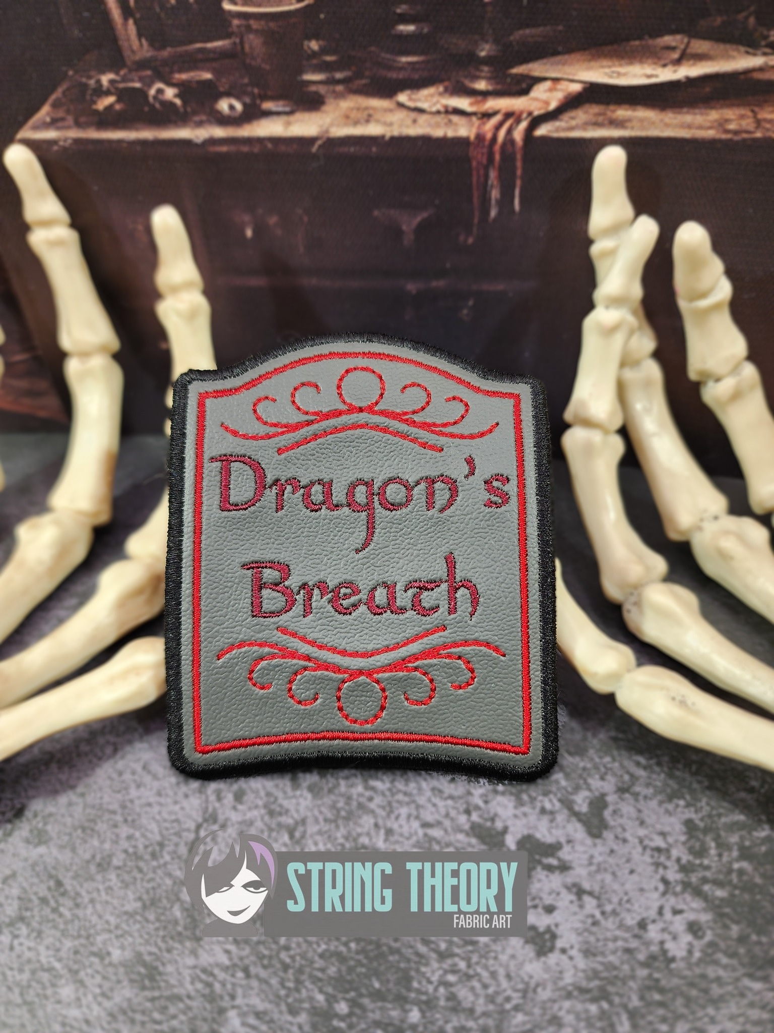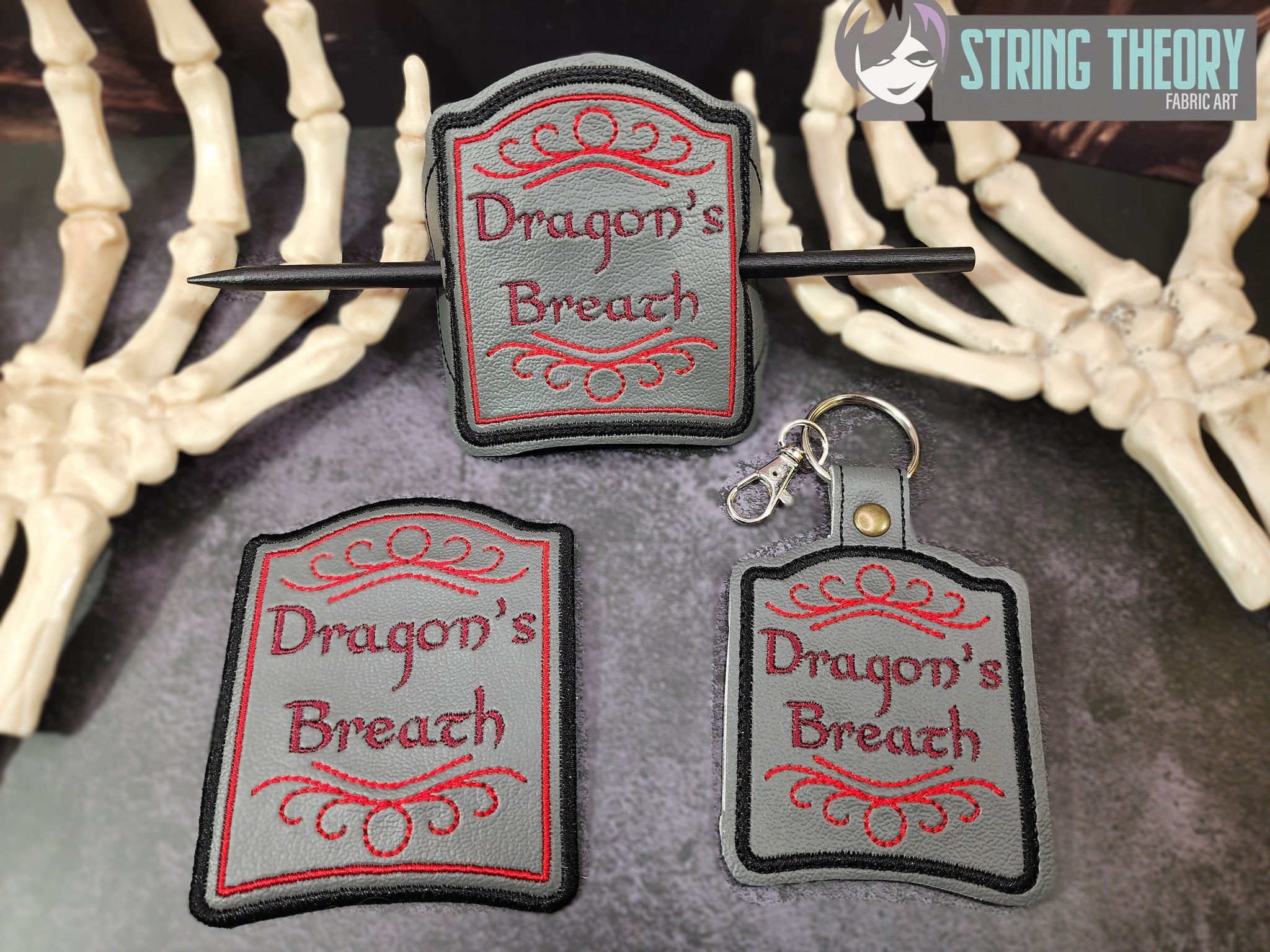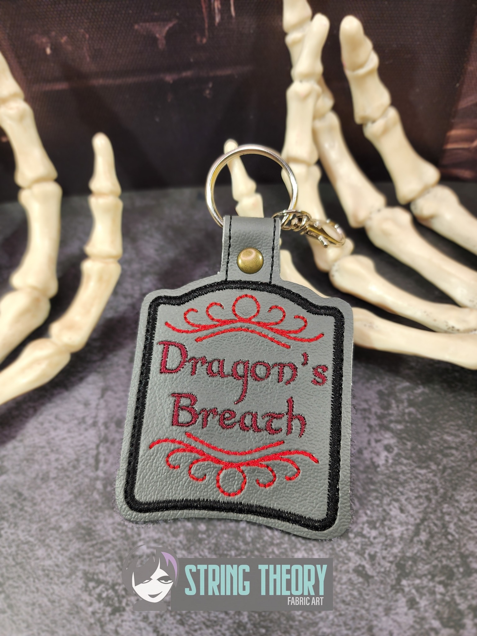 Potion Bottle Label – Dragon’s Breath fob, patch, bun cover ITH in the hoop Digital Download for Machine Embroidery Pattern, Design (4×4 Hoop)