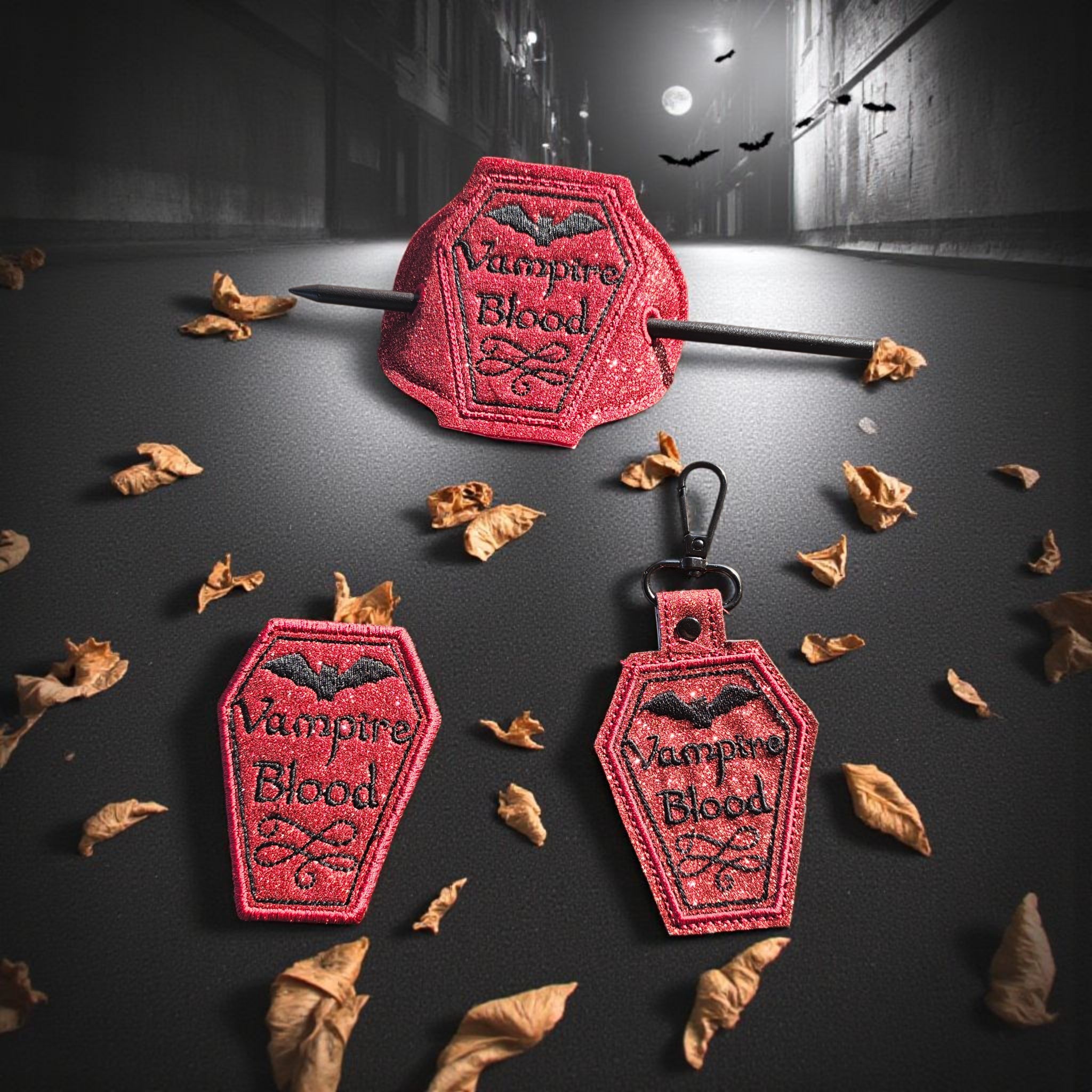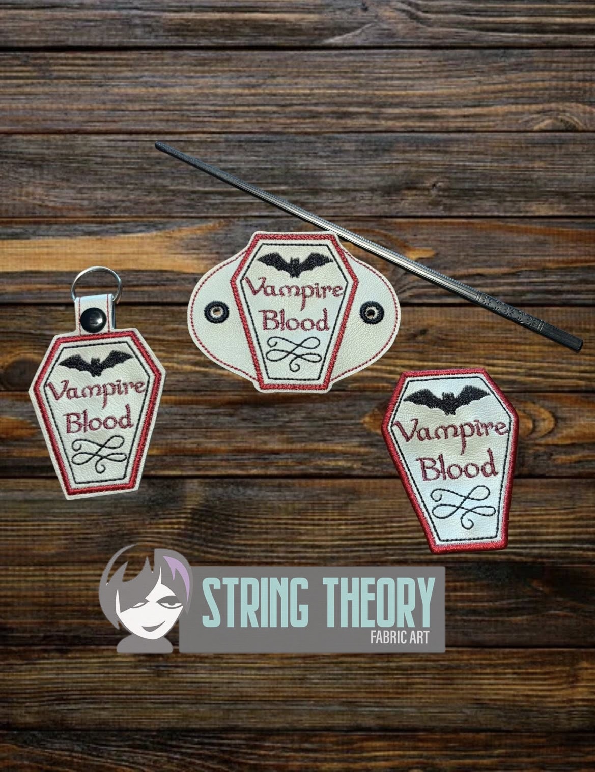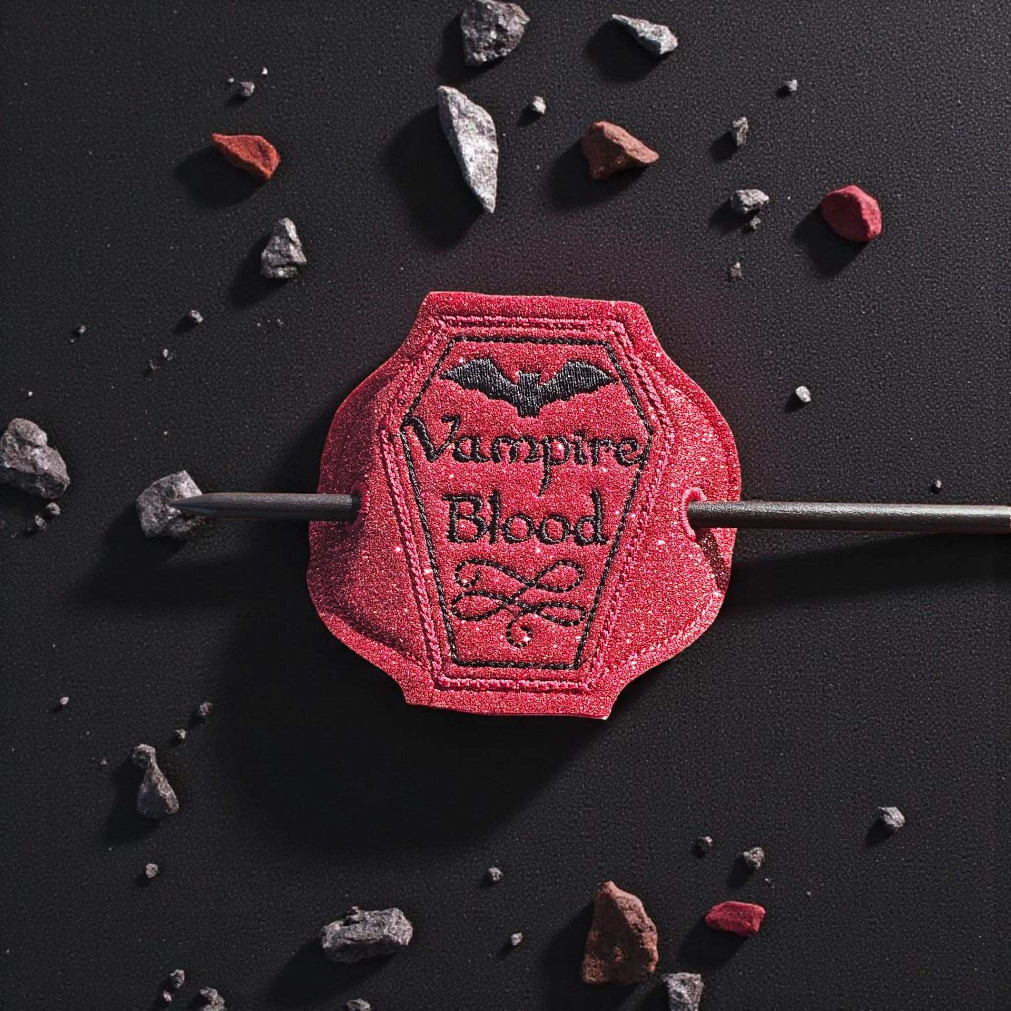 Potion Bottle Label – Vampire Blood fob, patch, bun cover ITH in the hoop Digital Download for Machine Embroidery Pattern, Design (4×4 Hoop)