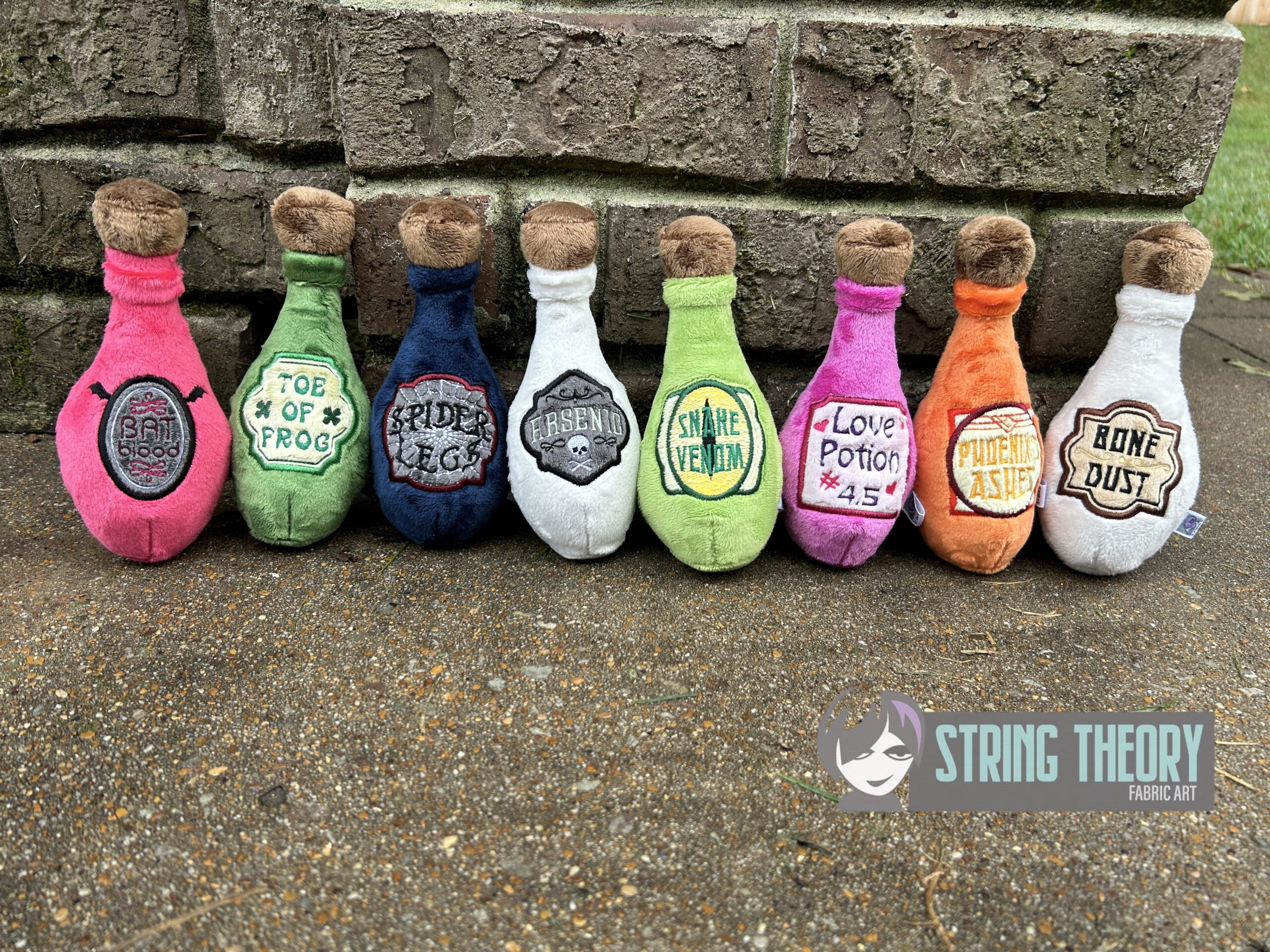 These appliqué potion bottle labels were designed to go on BeeZee Art sewn potion bottles which can be found here https://www.beezeeart.com/products/potion-bottle-plush-sewing-pattern-digital-download?_pos=4&_sid=a4bbb26d0&_ss=r