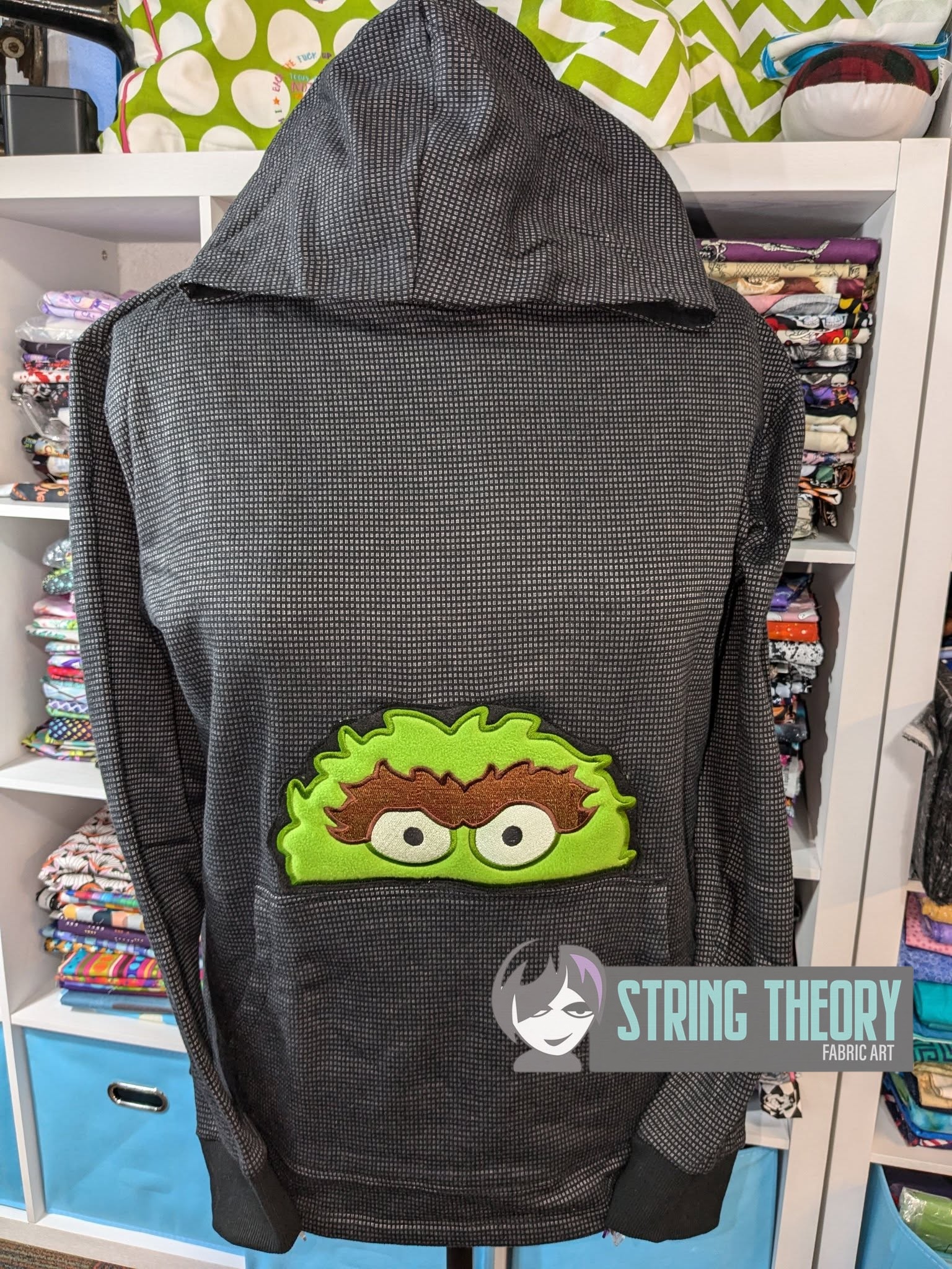 This listing includes an ITH machine embroidery design peeker for your hoop and your fandom.