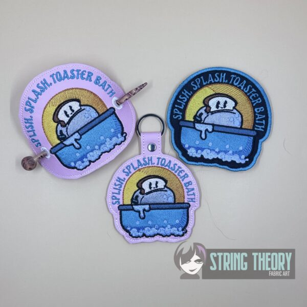 Splish, Splash, Toaster Bath fob, patch, bun cover ITH in the hoop Digital Download for Machine Embroidery Pattern, Design (4×4 Hoop) —