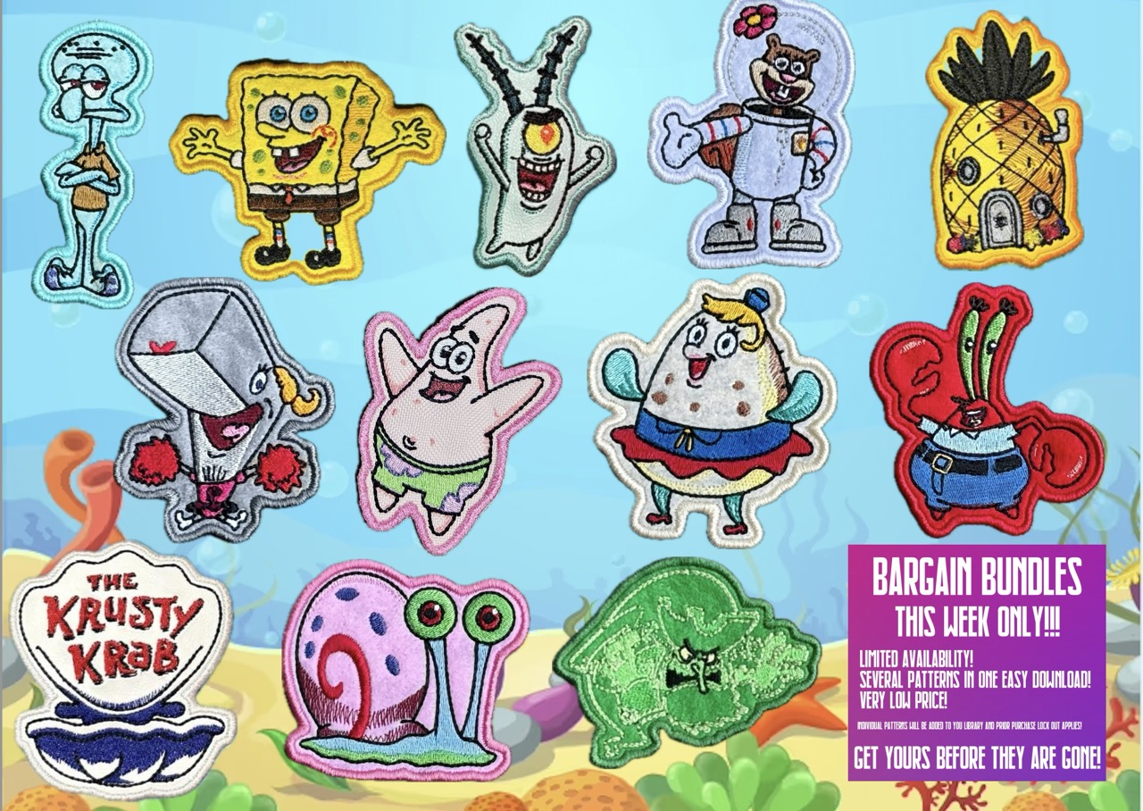 SpongeBob SquarePants Patch ITH Machine Embroidery Pattern 4×4 Hoop – Bargain Bundle
