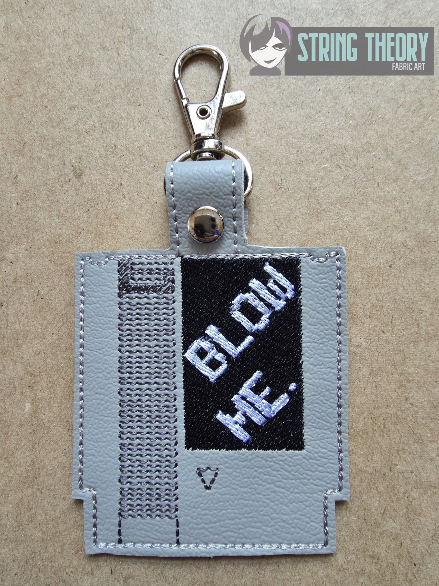 This listing includes an ITH machine embroidery design for a bun cover, fob, or patch sized for your hoop and your fandom.