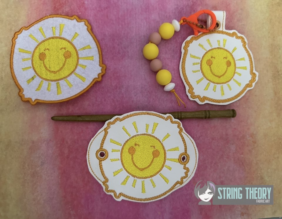The Care Bears – Funshine Bear Symbol fob, patch, bun cover ITH in the hoop Digital Download for Machine Embroidery Pattern, Design (4×4 Hoop)