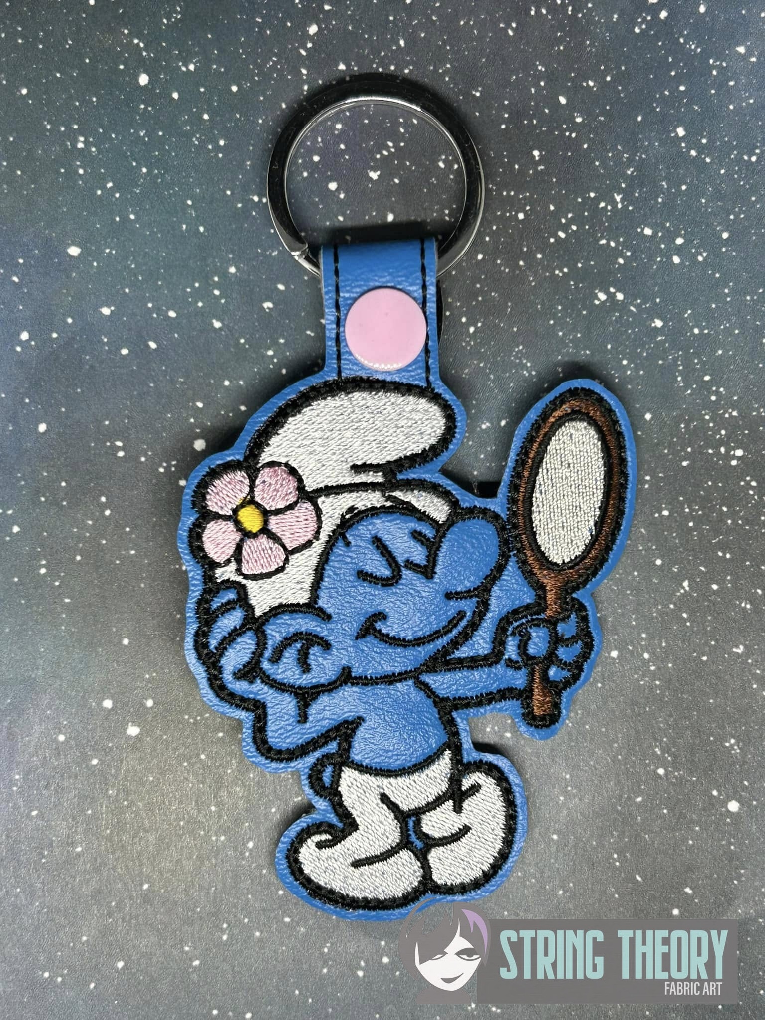 Fob measures approximately 2 5/8″ x 3 1/8″ with a ½” x 1 ½” tab to fold over the slip ring or lobster claw.
