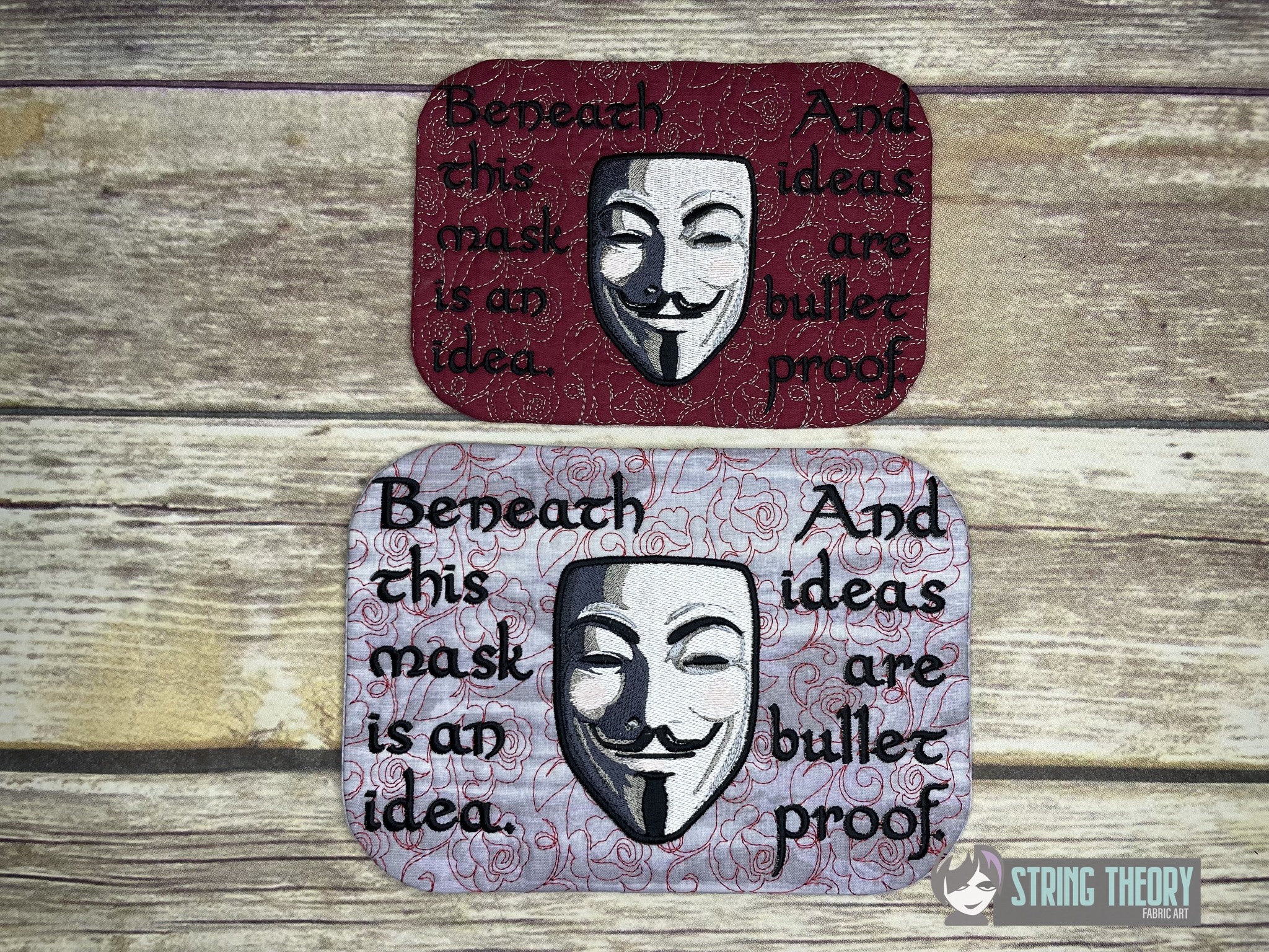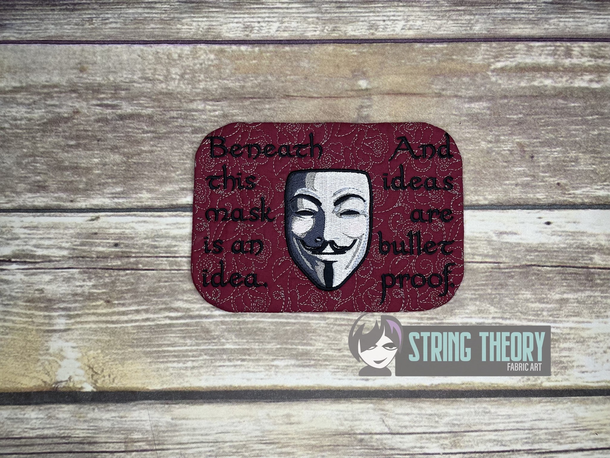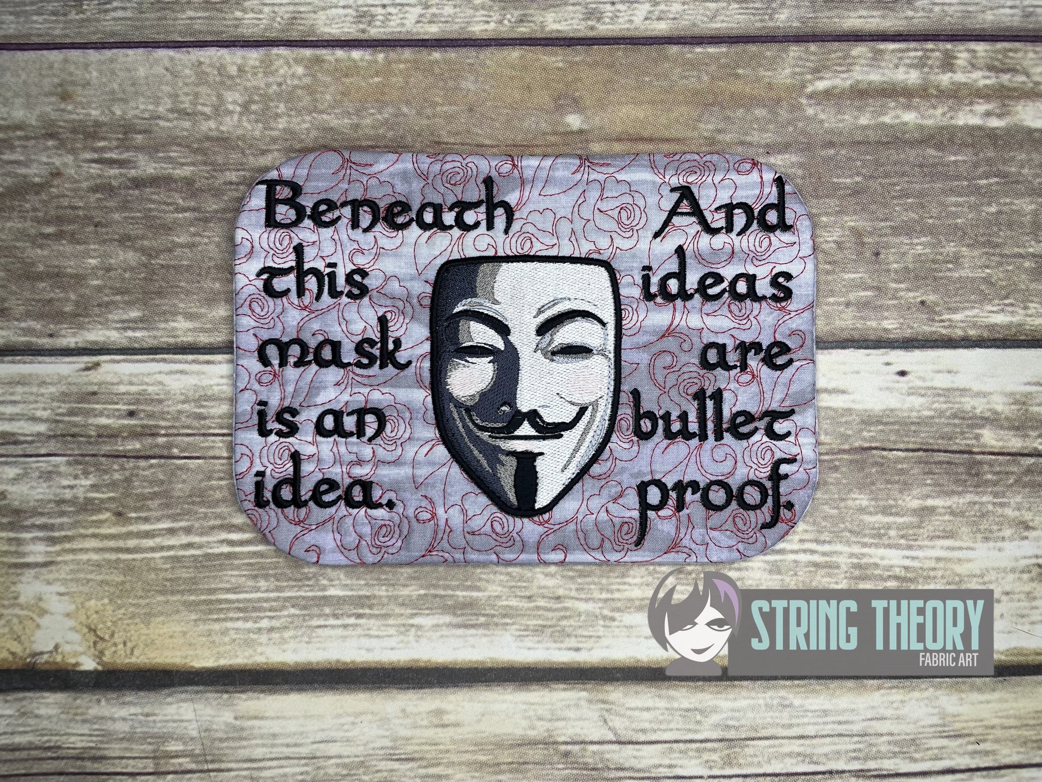 V for Vendetta – Guy Fawkes Mask Mug Rug ITH in the hoop Digital Download for Machine Embroidery Pattern, Design (5×7, 6×10 Hoop)
